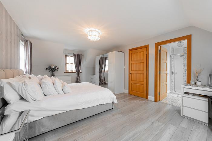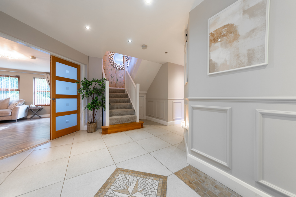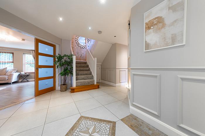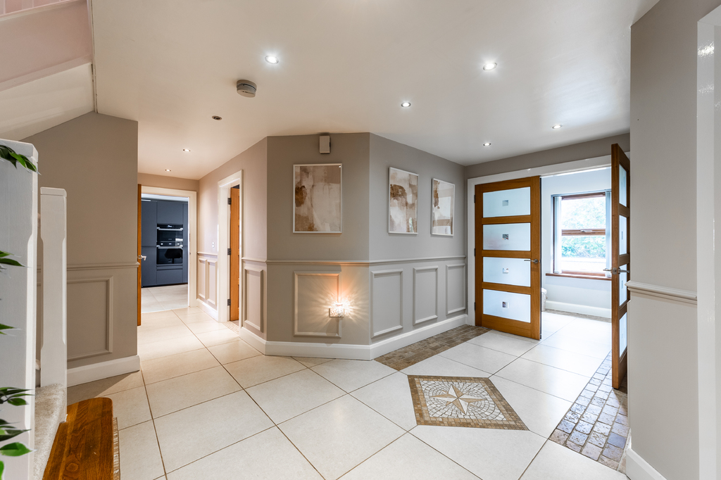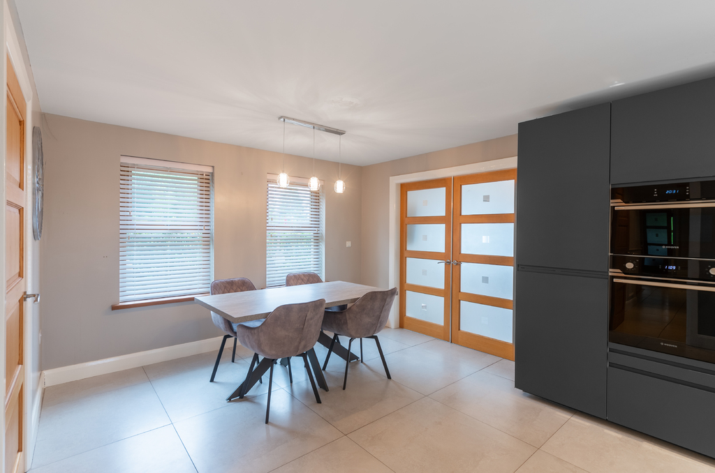 Approached by long gated driveway and finished to the highest standard throughout this impeccable home offers a wealth of spacious and stylish accommodation throughout. Meticulously maintained and upgraded by the current owners this stunning property is set just of the Ballyphilip Road on a generous prime site with fabulous views minutes' walk to local schools, amenities and town centre and will have great appeal due to its faultless presentation and convenient location. Internally the property comprises of an impressive tiled entrance hallway, spacious and elegant lounge, with feature stone open fireplace and second reception room, currently used as a playroom, overlooking the gardens. The bespoke luxury fitted open plan kitchen with stylish dining area has many extra features to include, centre island and double oven and leads to family room/snug with access to paved sun terrace with great views over the surrounding area. The property also benefits from handy utility room with plenty of built-in storage and contemporary downstairs bathroom with walk in shower. On the first floor are four immaculately presented double bedrooms, the master with contemporary ensuite and separate luxury family bathroom with large sunken bath, modern floating vanity units and storage. Externally the property has extensive wraparound gardens laid in lawn with mature trees and shrubs, driveway and spacious paved parking area providing ample car parking for several cars, boat, or horse boxes. The double garage has been converted on one side with a gym downstairs and upstairs is fully plumbed for heating and electricity making a great extra living space for staying relatives or teenagers keeping your perfect home perfect!