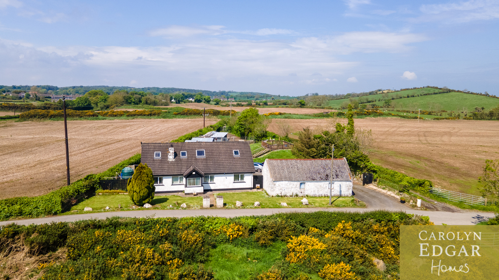 Set down a quiet country road surrounded by green fields on a large site of circa ¾ acre this former labourer's cottage has been extended over the years and now provides a wealth of spacious and flexible accommodation whatever your family needs with two bathrooms on the ground floor and five bedrooms in total set over the two floors offering a great opportunity to shape your own space. Located in Portaferry with its marina, local amenities and schools and close to the shores of Strangford Lough there are plenty of opportunities to enjoy the great outdoors, from sailing on the Lough to fishing or cold-water swimming. Internally the property comprises, on the ground floor, entrance porch, lounge with feature exposed brick walls and inglenook fireplace with wood burning stove separating the lounge from the dining room/snug, spacious open plan kitchen with casual dining area, three double bedrooms, office and two bathrooms, one with walk in shower. Upstairs there are two large double bedrooms providing ample extra space and accommodation. Externally the property sits on a large site of circa ¾ acre with large barn currently used for storage and raised sun terrace providing fabulous views over the surrounding area and will have appeal to those looking for a quieter, more relaxed pace of life with a little extra space and land in a picturesque semi-rural location.