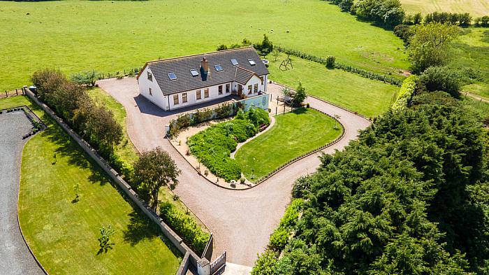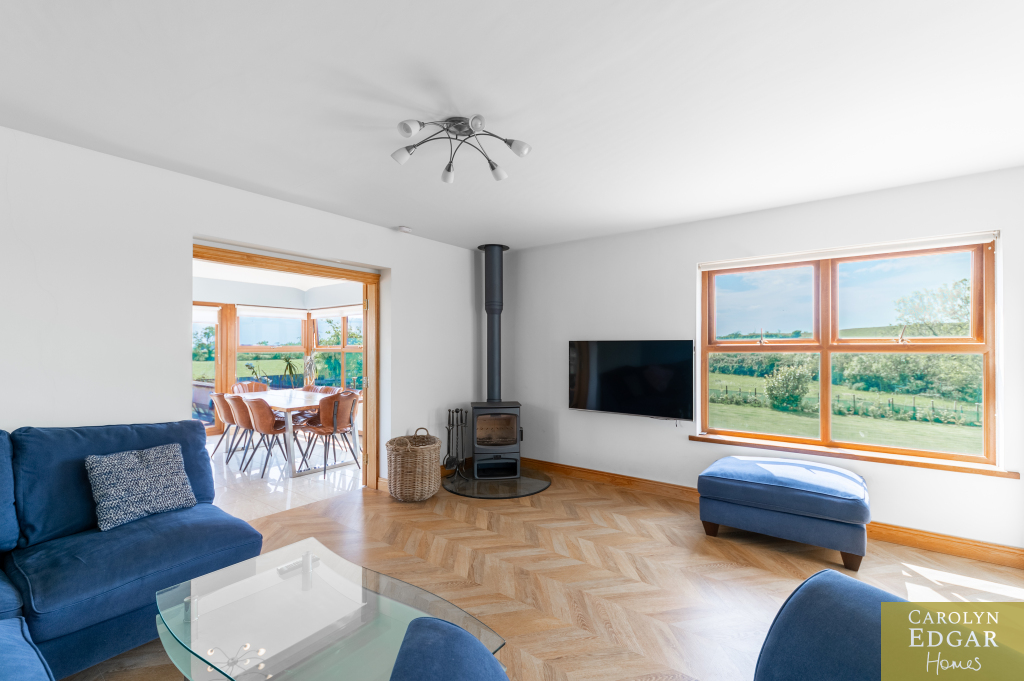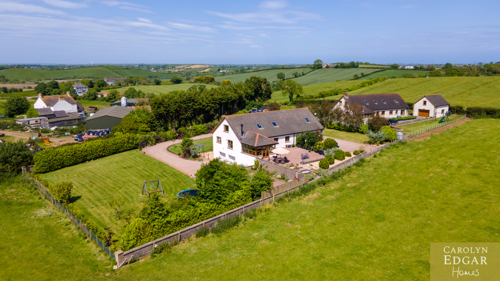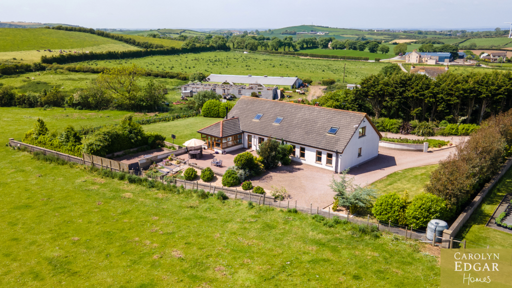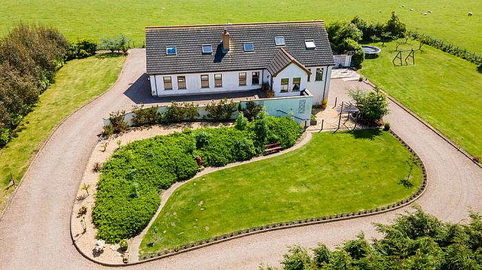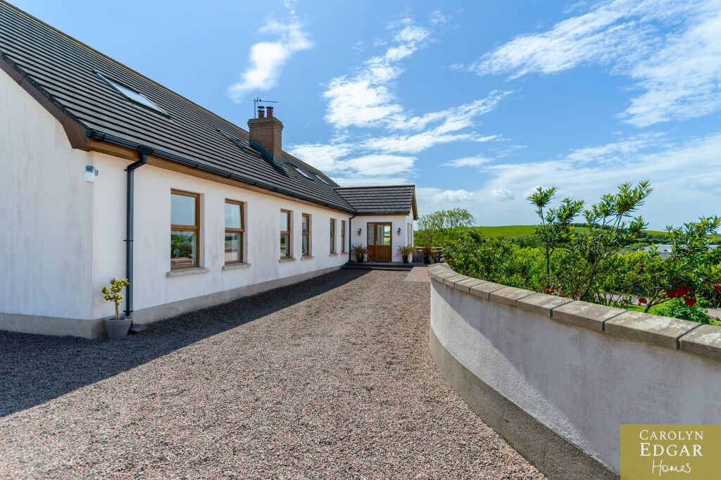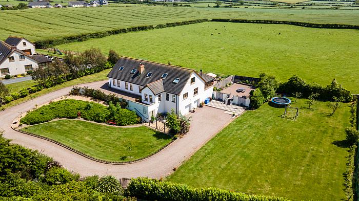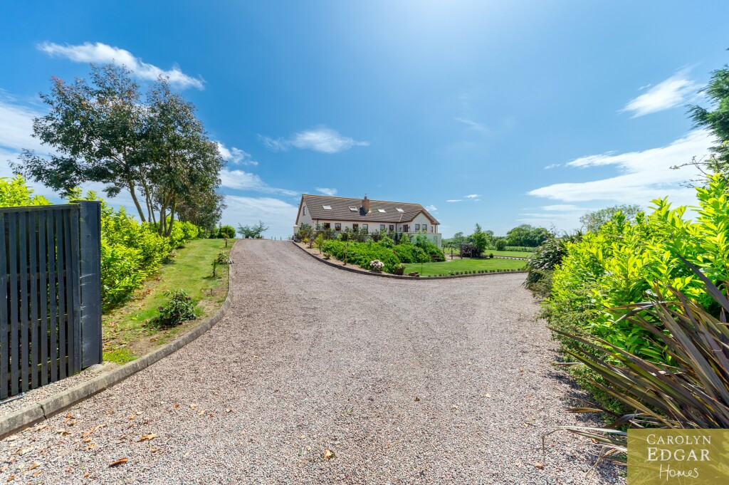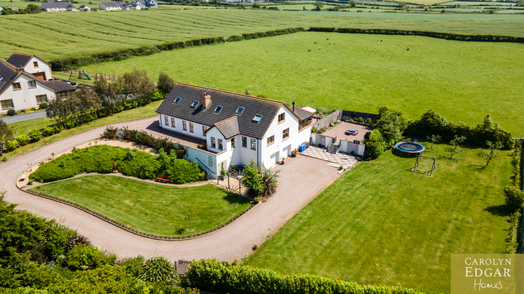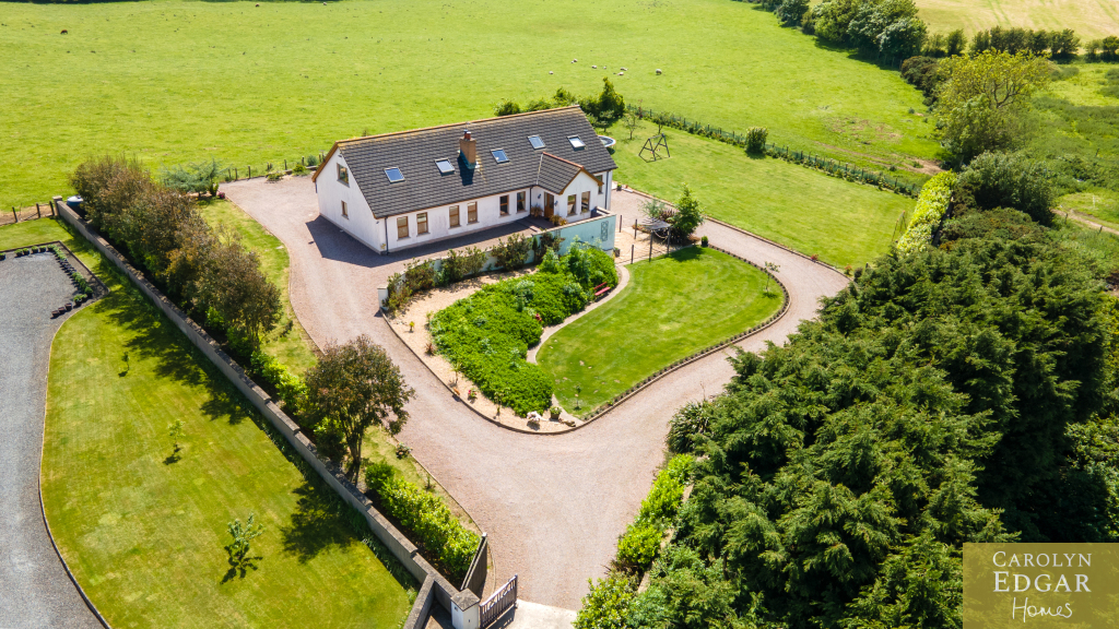 Located down private laneway with a delightful country back drop this impressive six-bedroom home is set on a fabulous elevated site with stunning countryside views. The property is immaculately presented throughout and with a floor space of over 3500sqft offers a wealth of spacious and stylish living accommodation whatever your family needs, providing that extra space for live in relatives, staying guests or an expanding brood. Set in beautifully maintained gardens of circa 0.75 acres and approached by sweeping driveway the property has fantastic panoramic views of the surrounding area and with an abundance of outdoors space too that will suit any family's needs. Internally the property comprises of a large welcoming reception hallway, extensive lounge with fabulous garden views and feature inglenook fireplace with wood burning stove, bespoke open plan contemporary kitchen with large centre island/breakfast bar open to spacious modern living room with wood burning stove and fabulous views from every window, flooding with plenty of natural light, leading to sunroom overlooking the gardens with countryside views. Additionally, there are four double bedrooms, master with ensuite on the ground floor and contemporary family bathroom with freestanding bath and handy separate utility room. There are a further two beautifully presented double bedrooms on the first floor, large games rooms/third reception room and contemporary bathroom. On the lower level is access to a substantial double garage with extensive workshop/storage and WC, perfect for those looking for some extra space for work or a hobby, or somewhere for noisy teenagers to be out of ear shot! Outside the property is set on a well maintained mature site of 0,75 acres with secure electric gated driveway providing ample car parking for several cars, boat, or horse boxes and faultless wrap around gardens. To the rear of the property is paved patio area leading from the sunroom, a perfect spot for a barbecue, entertaining or just sitting and taking in the view, and extensive gardens laid in lawn with mature shrubs, fruit trees and second raised paved sun terrace. Only a short drive will bring Portaferry with its marina, restaurants, shops, and schools there are plenty of opportunities to enjoy the great outdoors, from sailing on the Strangford Lough, cycling, fishing, walking and with the bustling market town of Newtownards only 20 minutes way, this really does present a unique opportunity for those looking for a change of pace and the lifestyle that comes with it.