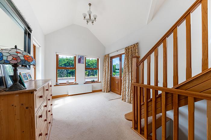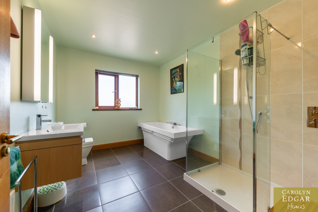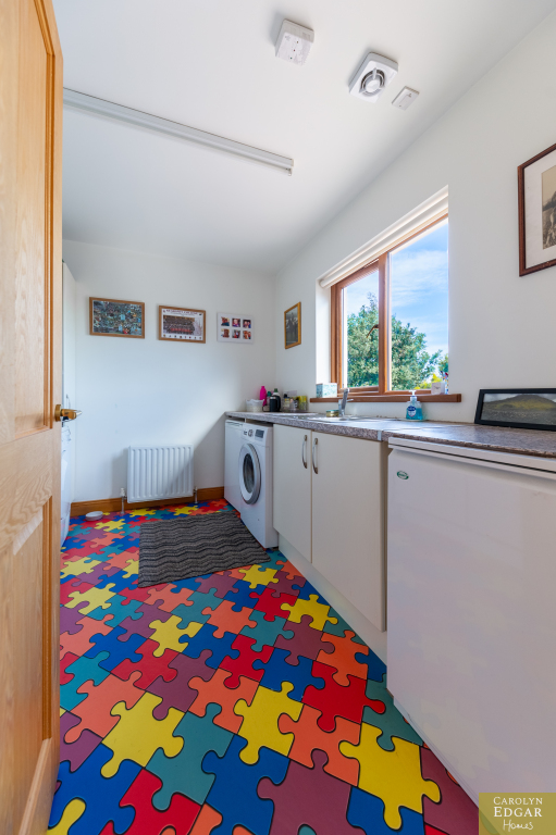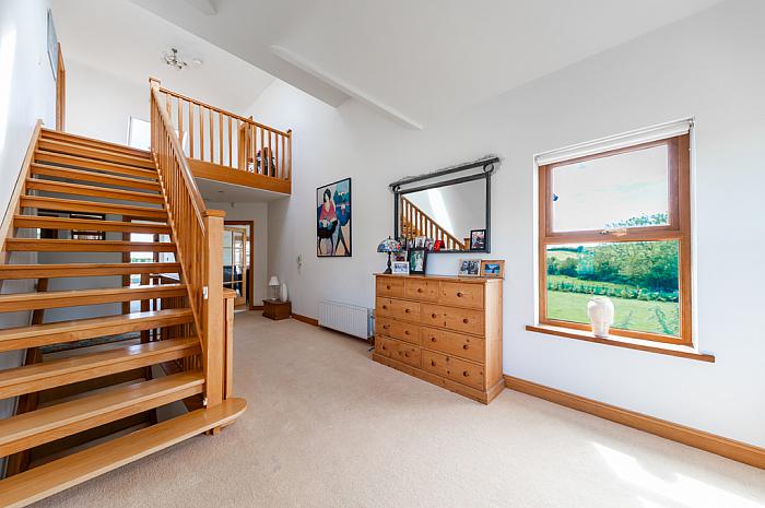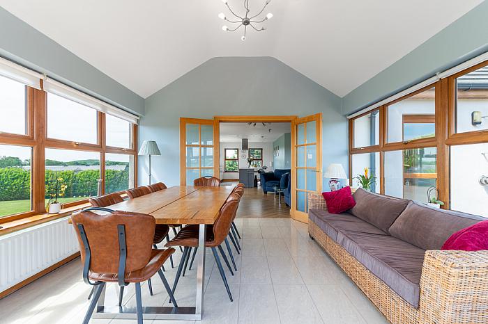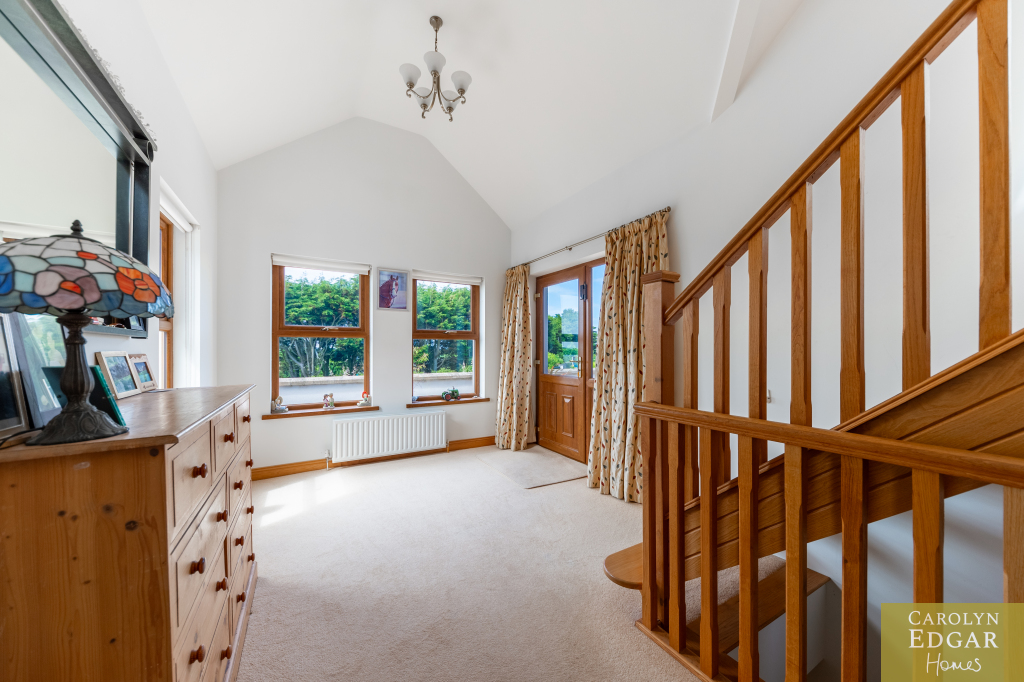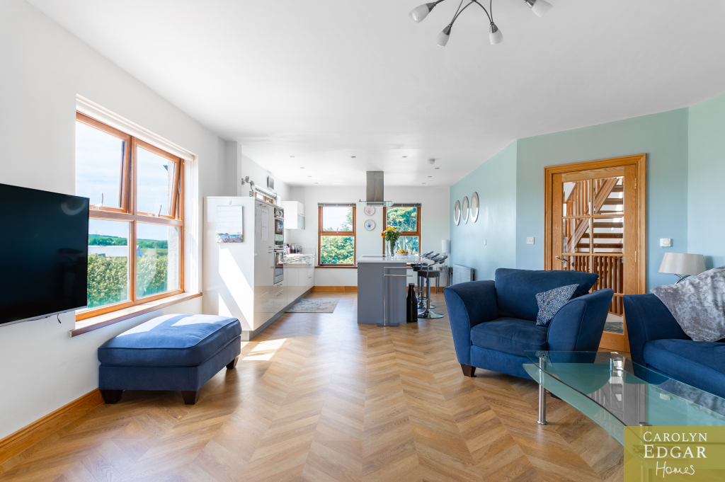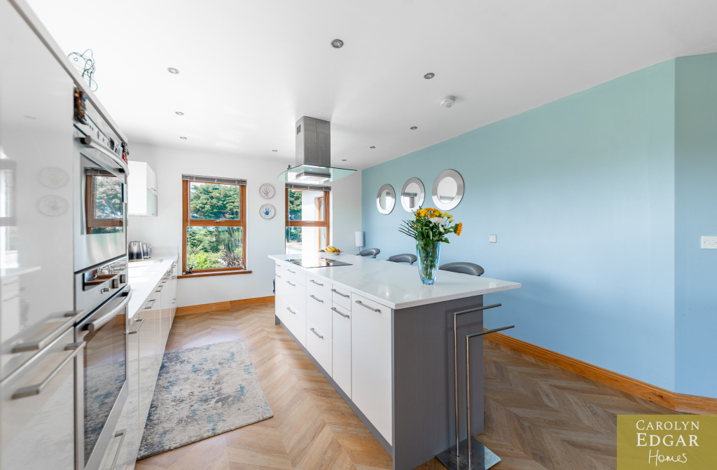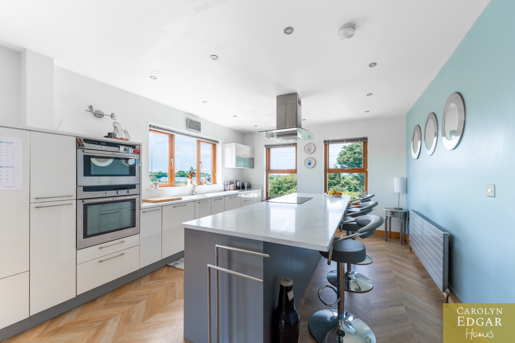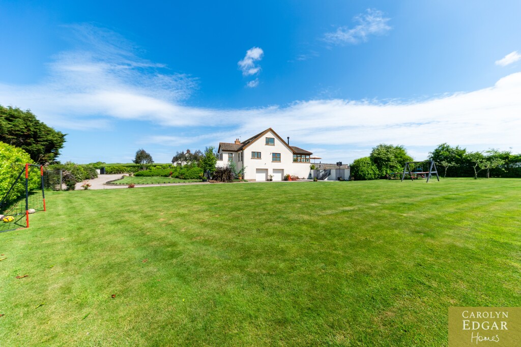 Located down private laneway with a delightful country back drop this impressive six-bedroom home is set on a fabulous elevated site with stunning countryside views. The property is immaculately presented throughout and with a floor space of over 3500sqft offers a wealth of spacious and stylish living accommodation whatever your family needs, providing that extra space for live in relatives, staying guests or an expanding brood. Set in beautifully maintained gardens of circa 0.75 acres and approached by sweeping driveway the property has fantastic panoramic views of the surrounding area and with an abundance of outdoors space too that will suit any family's needs. Internally the property comprises of a large welcoming reception hallway, extensive lounge with fabulous garden views and feature inglenook fireplace with wood burning stove, bespoke open plan contemporary kitchen with large centre island/breakfast bar open to spacious modern living room with wood burning stove and fabulous views from every window, flooding with plenty of natural light, leading to sunroom overlooking the gardens with countryside views. Additionally, there are four double bedrooms, master with ensuite on the ground floor and contemporary family bathroom with freestanding bath and handy separate utility room. There are a further two beautifully presented double bedrooms on the first floor, large games rooms/third reception room and contemporary bathroom. On the lower level is access to a substantial double garage with extensive workshop/storage and WC, perfect for those looking for some extra space for work or a hobby, or somewhere for noisy teenagers to be out of ear shot! Outside the property is set on a well maintained mature site of 0,75 acres with secure electric gated driveway providing ample car parking for several cars, boat, or horse boxes and faultless wrap around gardens. To the rear of the property is paved patio area leading from the sunroom, a perfect spot for a barbecue, entertaining or just sitting and taking in the view, and extensive gardens laid in lawn with mature shrubs, fruit trees and second raised paved sun terrace. Only a short drive will bring Portaferry with its marina, restaurants, shops, and schools there are plenty of opportunities to enjoy the great outdoors, from sailing on the Strangford Lough, cycling, fishing, walking and with the bustling market town of Newtownards only 20 minutes way, this really does present a unique opportunity for those looking for a change of pace and the lifestyle that comes with it.