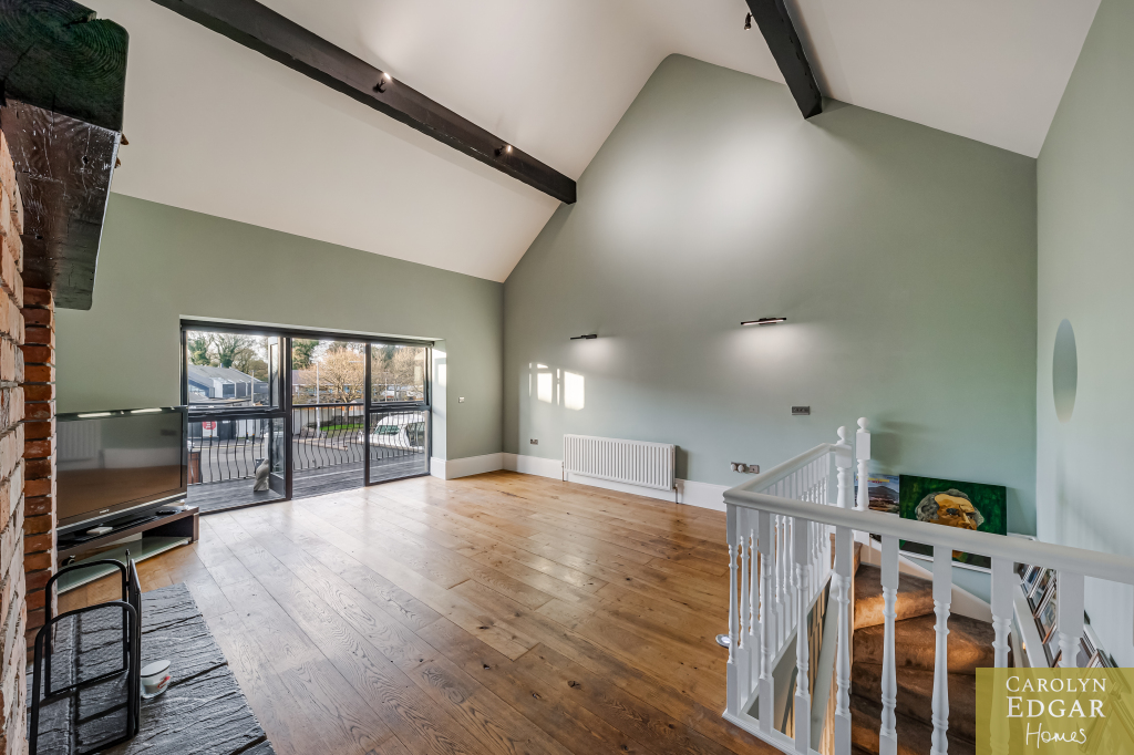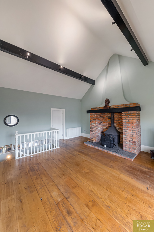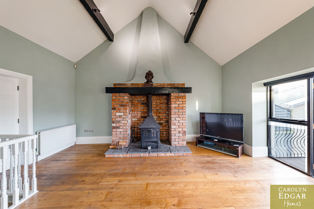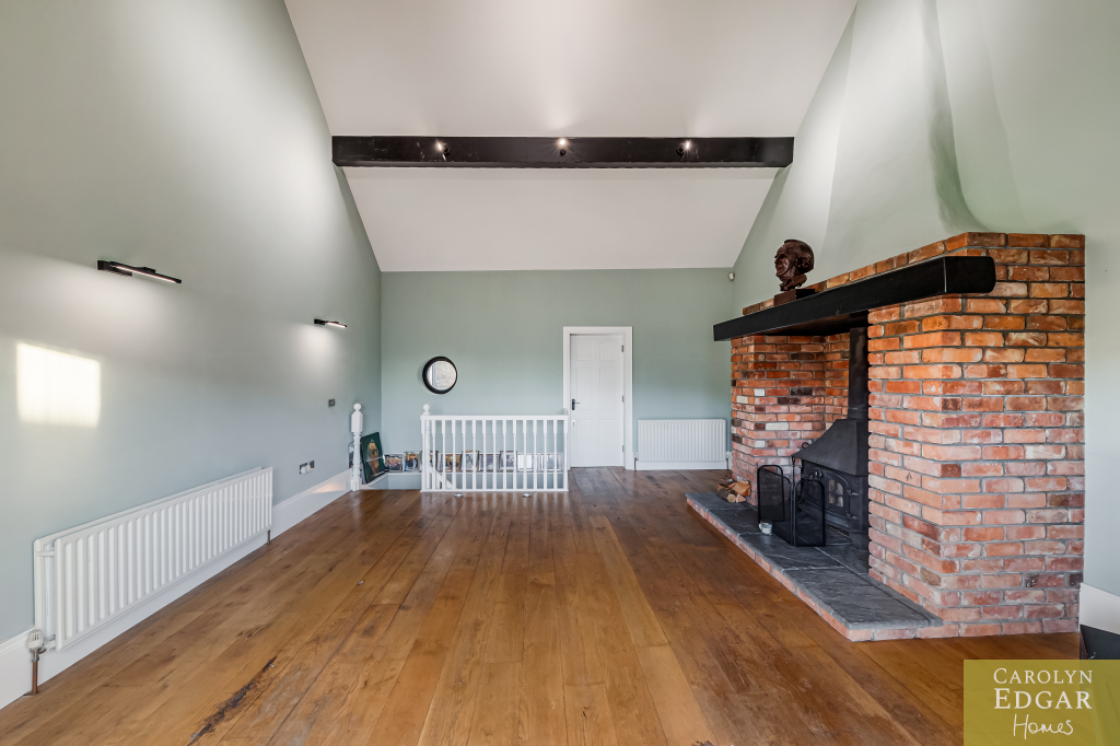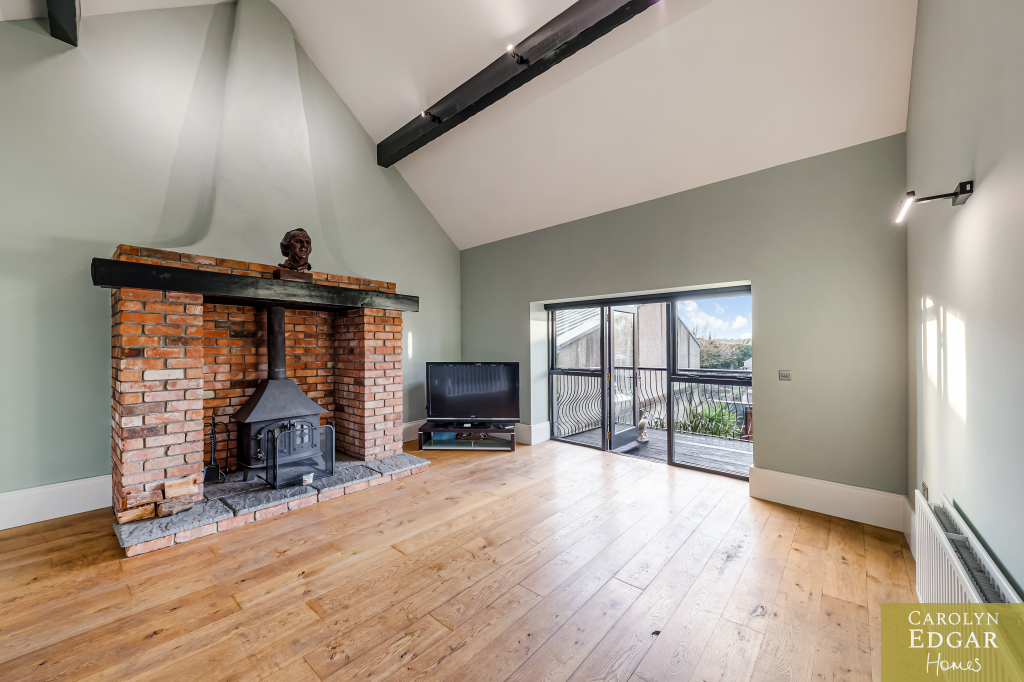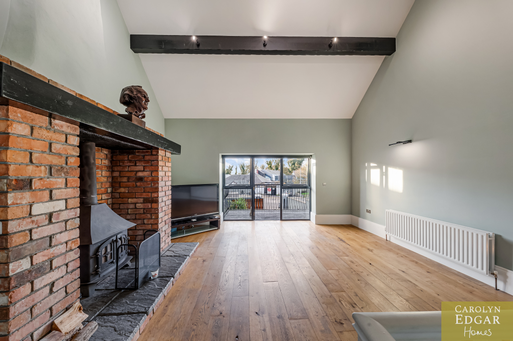 Large Lounge with Feature Brick Inglenook Fireplace and Decked Balcony