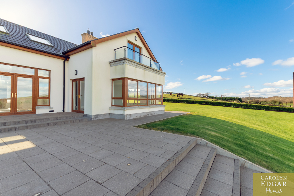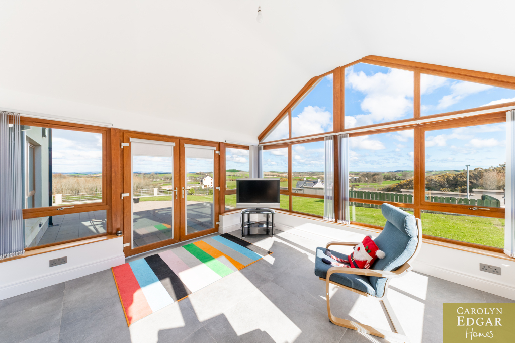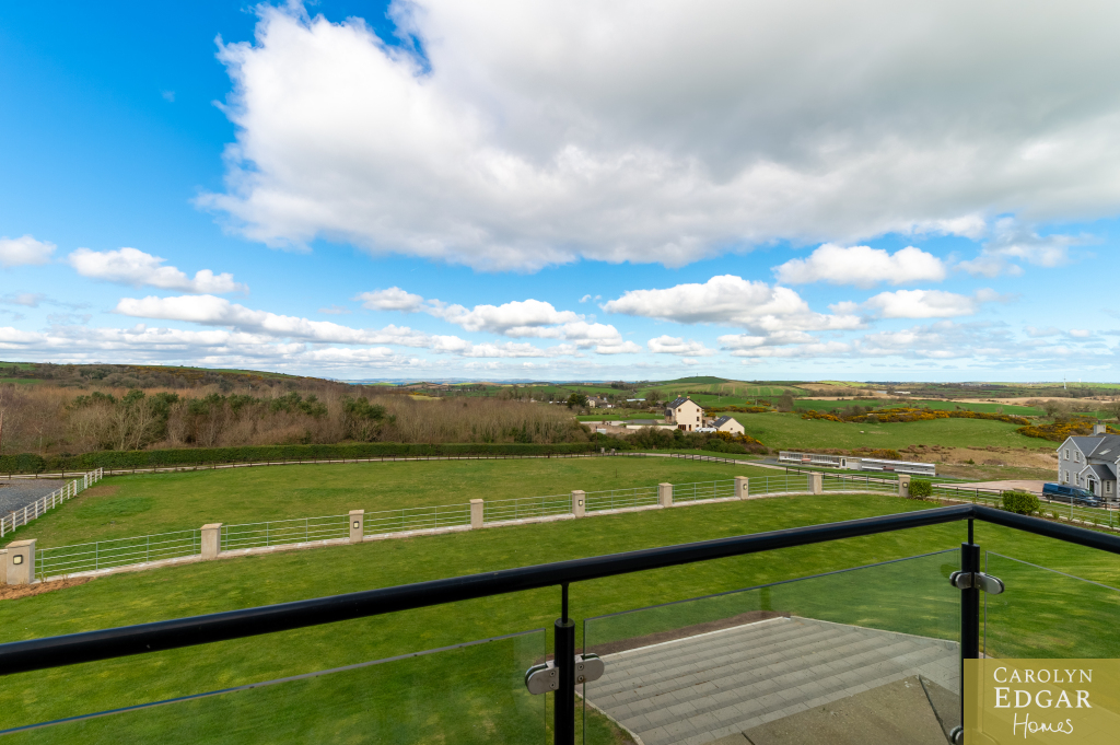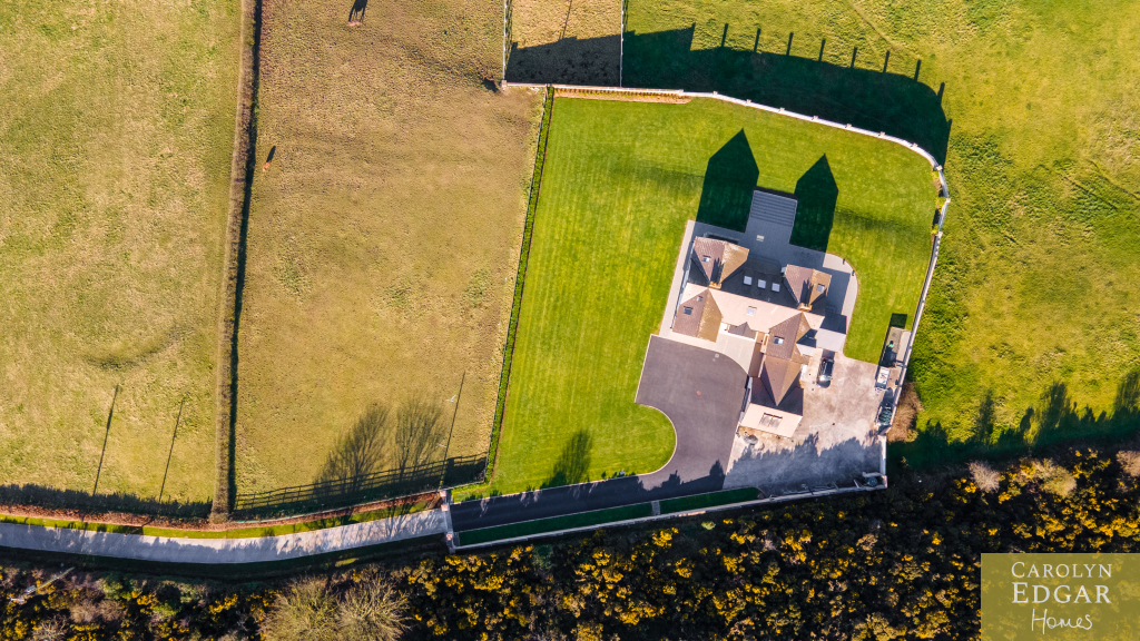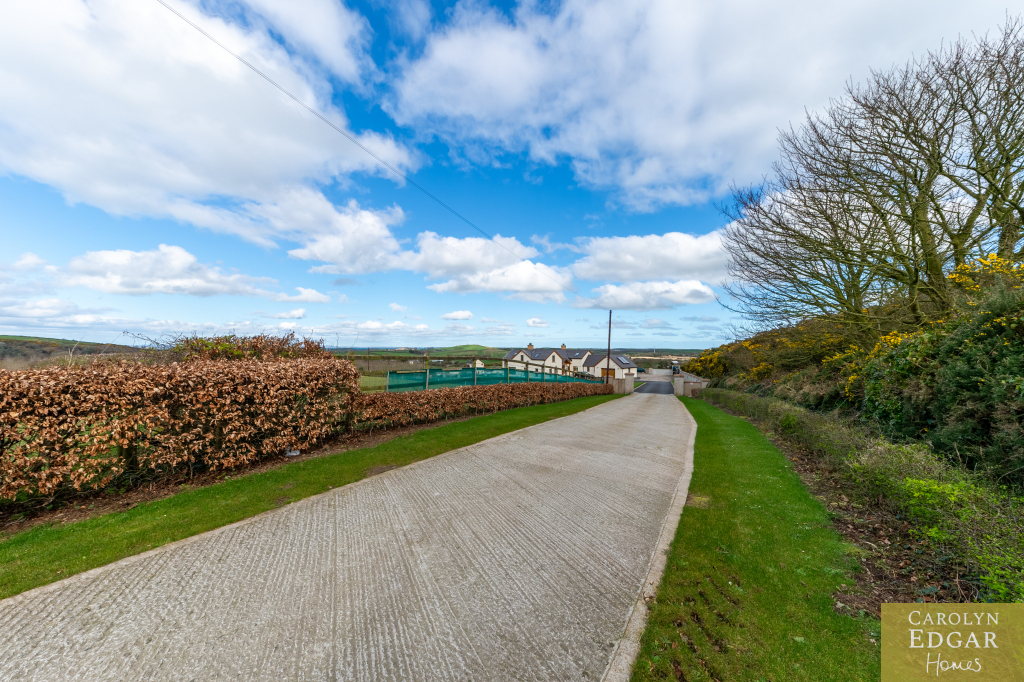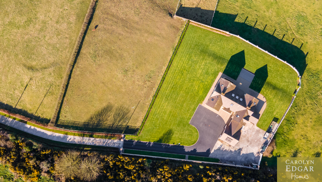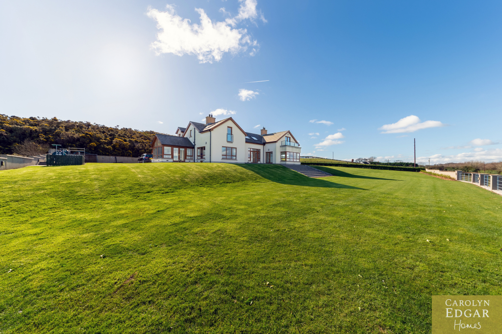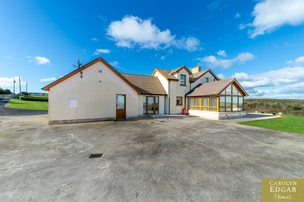 Nestled down a private laneway with a delightful country back drop this impressive five-bedroom home is set on a fabulous elevated private site with magnificent countryside views. Finished to the highest standard and immaculately presented throughout with an impressive floor space of over 3500sqft this contemporary home offers a wealth of spacious and stylish living accommodation whatever your family needs, from providing that extra space for live in relatives, staying guests or an expanding family with abundant living accommodation including a large double bedroom with ensuite on ground floor. Set in beautifully maintained gardens of just over one acre the property has fantastic panoramic views of the surrounding area with an profusion of outdoor space and with extra land available will be ideal for those with equestrian or farming interests. Internally the property comprises of a large welcoming reception hallway with feature mistral gallery and solid oak staircase, extensive dual aspect lounge with fabulous countrywide views ,French doors out to the paved sun terrace, inglenook fireplace piped for gas fire and pelmet lighting, the large open plan contemporary kitchen is the heart of the home, with an ample range of built in appliances, wine fridge, quartz work surfaces and large centre island/breakfast bar, leading to spacious family room with open fireplace, French doors to sun terrace and open plan sunroom from kitchen with those spectacular views from every window that flood the room with plenty of natural light. Additionally, there is a large double bedroom with ensuite on the ground floor, separate office/study, large cloak room, separate utility room, bathroom and integrated double garage. The feature mistral gallery with glass balustrades offers a stylish and contemporary landing area with a further four beautifully presented large double bedrooms, two with en-suite and Juliet balcony and outstanding views over the area, luxury fully tiled family bathroom with freestanding bath and ample storage and laundry rooms. Outside the property is set on a well maintained mature site with installation in place for electric gate, extensive driveway providing ample car parking for several cars, boat, or horse boxes and boundless wrap around gardens. To the rear of the property is a paved patio area leading from the sunroom, a perfect spot for a barbecue, entertaining or just sitting and taking in the views. Only a short drive will bring Portaferry with its marina, restaurants, shops, and schools providing plenty of opportunities to enjoy the great outdoors, from sailing on the Strangford Lough, cycling, fishing, walking and with the bustling market town of Newtownards only 20 minutes way, this really does present a unique opportunity for those looking for a change of pace and the lifestyle that comes with it.