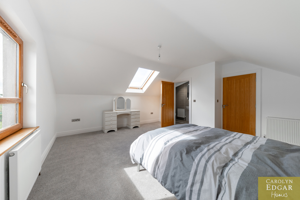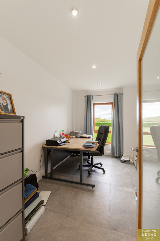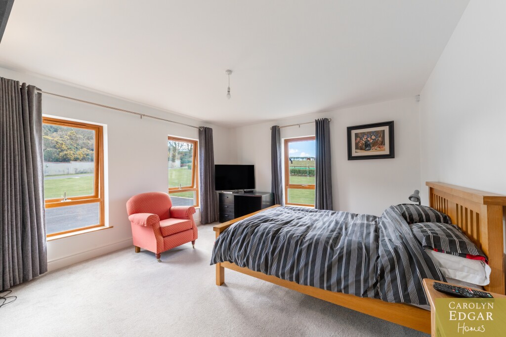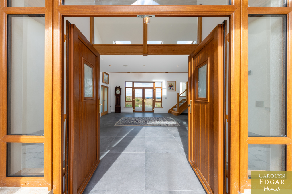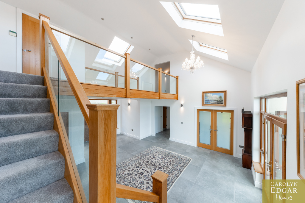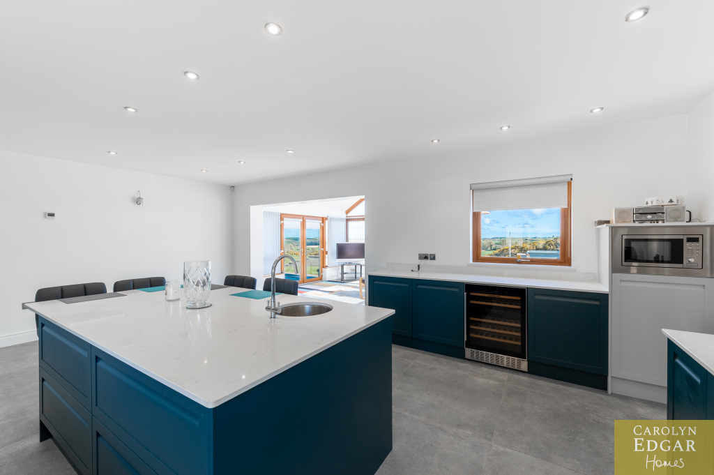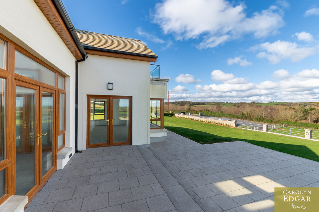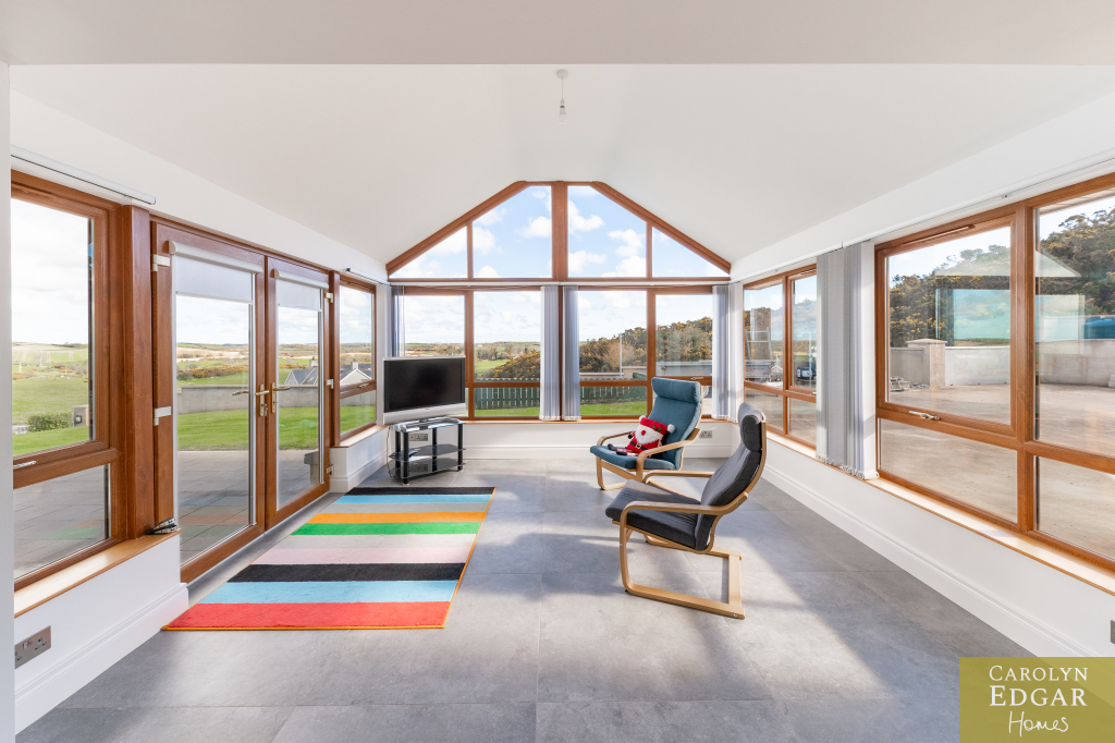 Nestled down a private laneway with a delightful country back drop this impressive five-bedroom home is set on a fabulous elevated private site with magnificent countryside views. Finished to the highest standard and immaculately presented throughout with an impressive floor space of over 3500sqft this contemporary home offers a wealth of spacious and stylish living accommodation whatever your family needs, from providing that extra space for live in relatives, staying guests or an expanding family with abundant living accommodation including a large double bedroom with ensuite on ground floor. Set in beautifully maintained gardens of just over one acre the property has fantastic panoramic views of the surrounding area with an profusion of outdoor space and with extra land available will be ideal for those with equestrian or farming interests. Internally the property comprises of a large welcoming reception hallway with feature mistral gallery and solid oak staircase, extensive dual aspect lounge with fabulous countrywide views ,French doors out to the paved sun terrace, inglenook fireplace piped for gas fire and pelmet lighting, the large open plan contemporary kitchen is the heart of the home, with an ample range of built in appliances, wine fridge, quartz work surfaces and large centre island/breakfast bar, leading to spacious family room with open fireplace, French doors to sun terrace and open plan sunroom from kitchen with those spectacular views from every window that flood the room with plenty of natural light. Additionally, there is a large double bedroom with ensuite on the ground floor, separate office/study, large cloak room, separate utility room, bathroom and integrated double garage. The feature mistral gallery with glass balustrades offers a stylish and contemporary landing area with a further four beautifully presented large double bedrooms, two with en-suite and Juliet balcony and outstanding views over the area, luxury fully tiled family bathroom with freestanding bath and ample storage and laundry rooms. Outside the property is set on a well maintained mature site with installation in place for electric gate, extensive driveway providing ample car parking for several cars, boat, or horse boxes and boundless wrap around gardens. To the rear of the property is a paved patio area leading from the sunroom, a perfect spot for a barbecue, entertaining or just sitting and taking in the views. Only a short drive will bring Portaferry with its marina, restaurants, shops, and schools providing plenty of opportunities to enjoy the great outdoors, from sailing on the Strangford Lough, cycling, fishing, walking and with the bustling market town of Newtownards only 20 minutes way, this really does present a unique opportunity for those looking for a change of pace and the lifestyle that comes with it.