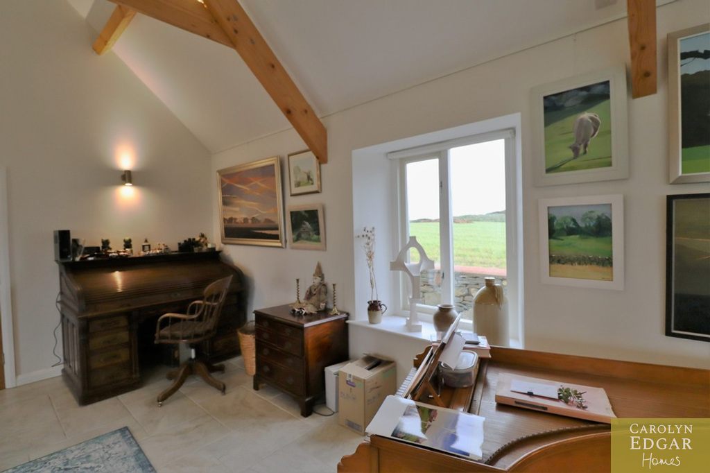 Set on beautifully manicured gardens, with gated driveway and views over the coastline the Artists Barn will have great appeal for those looking for a slower pace of life in outstanding surroundings, with plenty of opportunities to enjoy the great outdoors, from sailing on the Lough, cycling and fishing, this is the perfect place to do it! Internally the cottage comprises of entrance hallway, outstanding open plan reception room with magnificent feature vaulted timber ceiling and spectacular views, large modern fitted kitchen with casual dining and utility room. The master bedroom with ensuite, comes with both garden and sea views and the second bedroom with garden views, and separate modern bathroom/wet room.