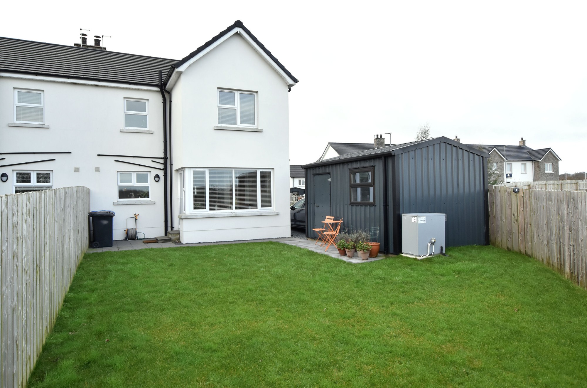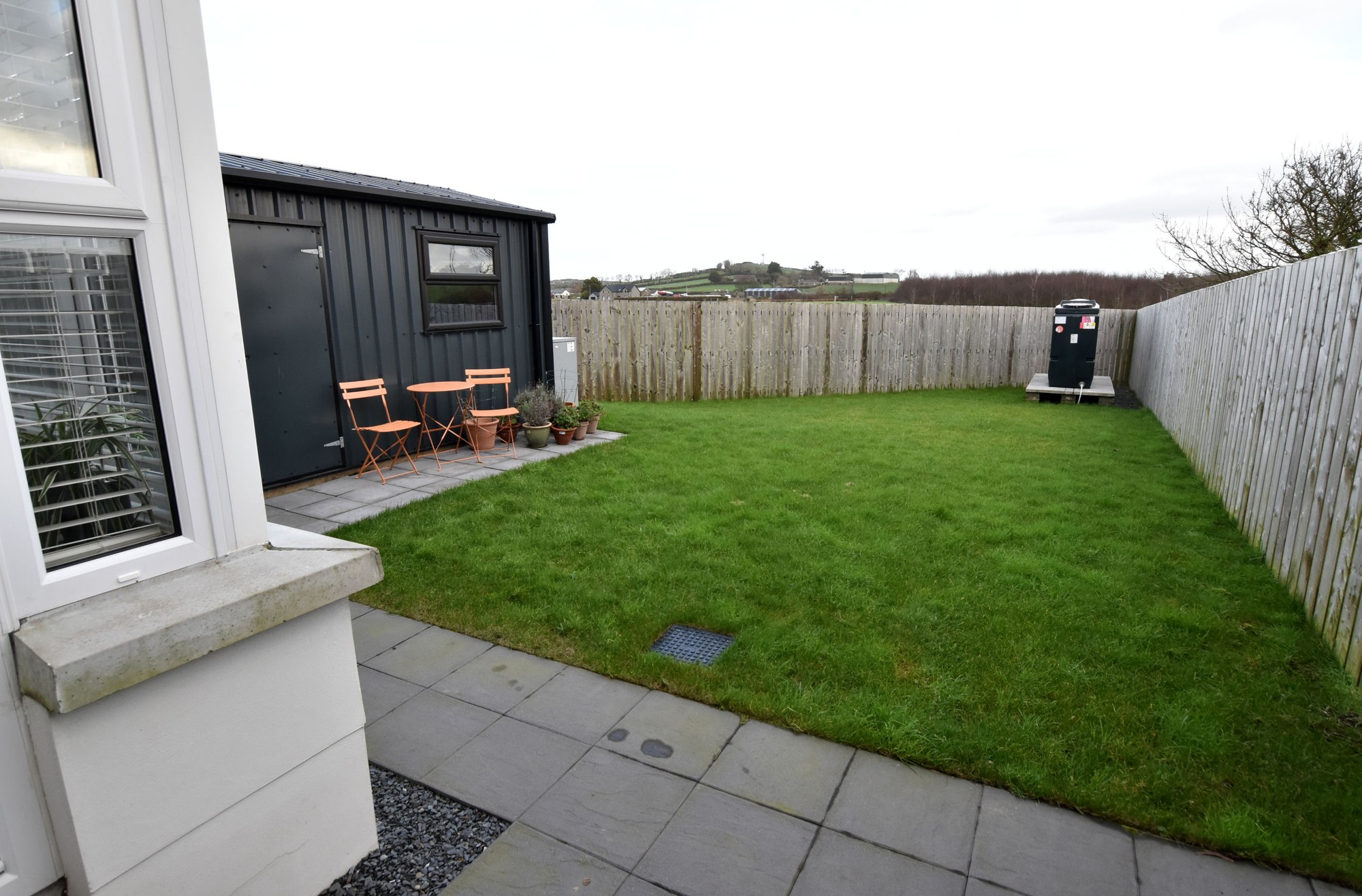 Outside, the fully enclosed rear garden overlooking the open countryside, is laid mainly in lawn and offers a private, secure space for children, pets or summer evenings. A garden shed with light, power and service door provides excellent additional storage or hobby space, and the screened driveway offers off-street parking with added privacy.