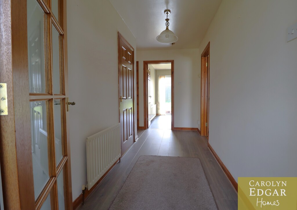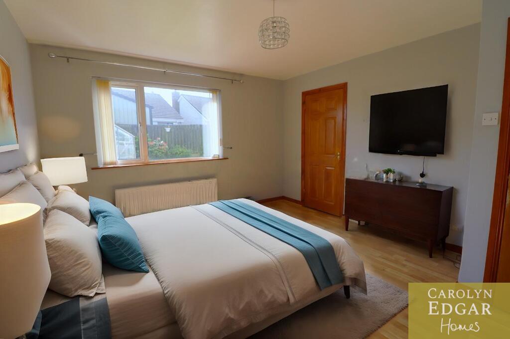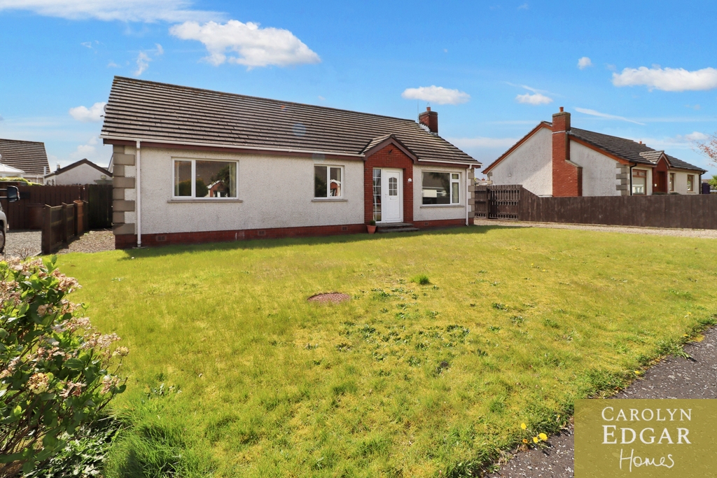 This bright and spacious three-bedroom bungalow is set in a popular residential area only a short walk to the shoreline and harbour town of Portavogie and minutes' drive to stunning beaches of Cloughey. Set on a generous site in a quiet cul de sac the property comprises of brights entrance hallway and porch, large lounge with feature open fireplace and spacious kitchen with casual dining area with patio doors leading out to the sunny rear gardens. There are three large double bedrooms, with built in storage or robes, the master with potential to convert walk in robes to an ensuite and large separate family bathroom with both shower and bath. Outside the property has considerable gardens to the front laid in lawn and driveway providing ample car parking for several cars, caravan etc, and to the rear are private enclosed gardens, with mature trees and shrubs and small paved patio area.
