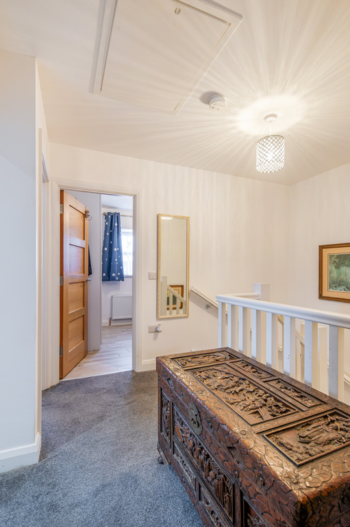 Upstairs, there are three well-proportioned bedrooms, including a master bedroom with ensuite, separate luxury shower room, utility storage plumbed for washing machine and dryer and separate walk-in linen store on landing