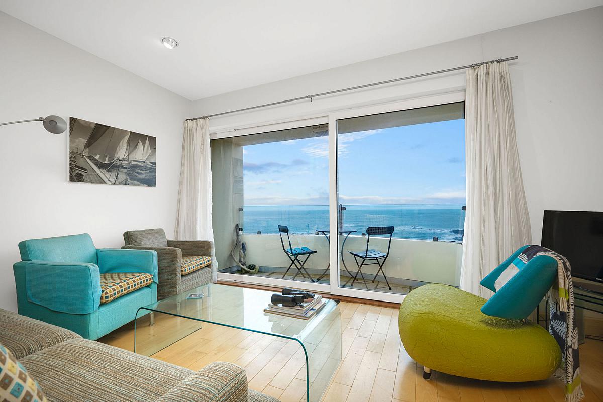 With recessed lighting, dimmer control panel, solid wood floor and sliding patio doors leading onto paved balcony with uninterrupted Atlantic Ocean views. Door leading to: