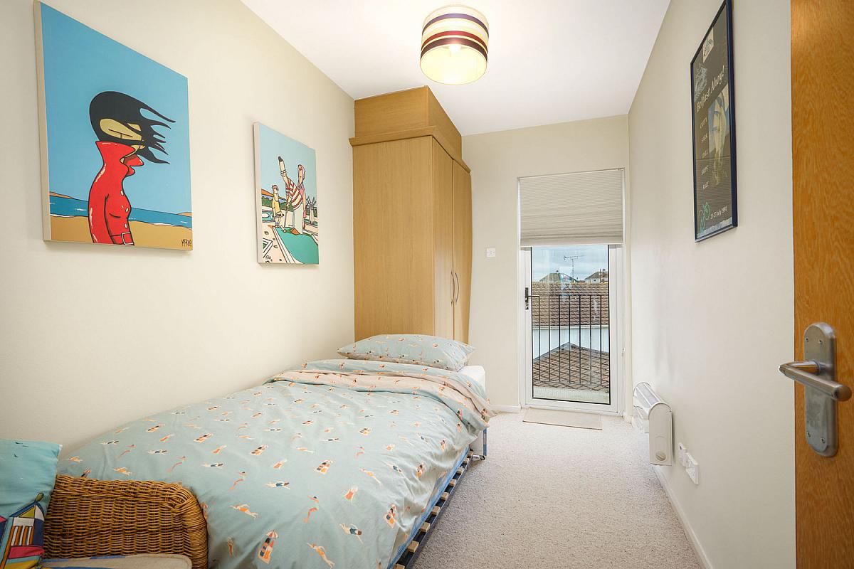 With two single built in wardrobes, headboard, two lockers and partial sea views. 13'6 x 8'2