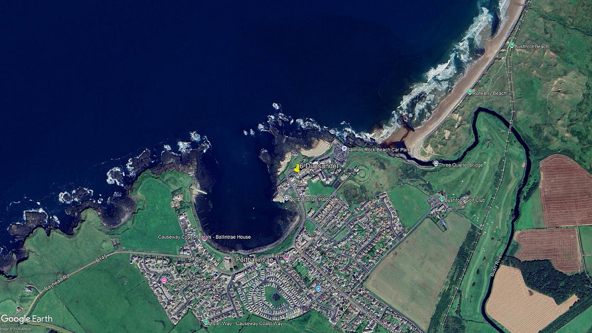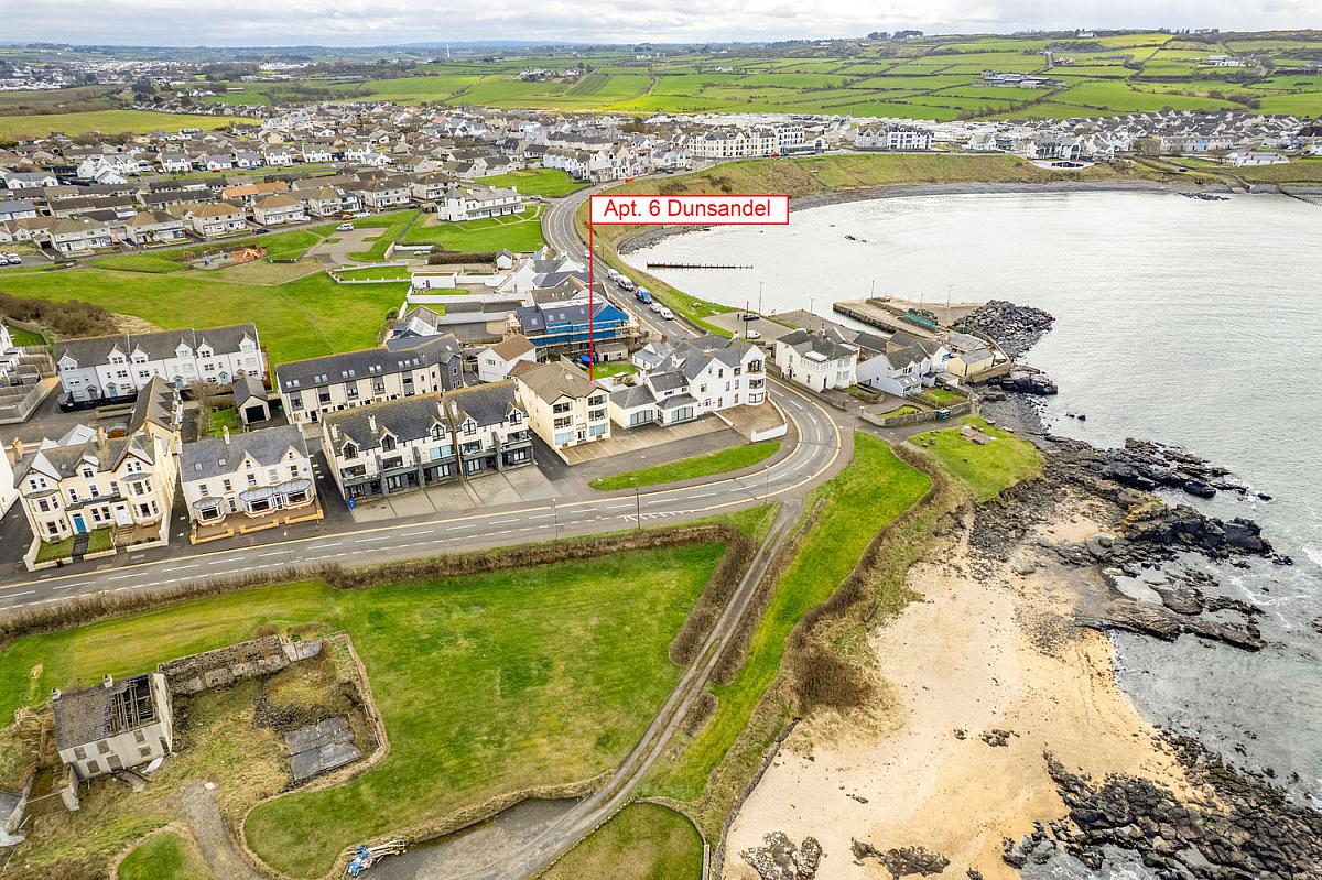 Travelling into Portballintrae from Portrush, proceed along Beach Road past the Bayview Hotel. Follow the road around past the harbour and Dunsandel Apartments will be on your right hand side before the car park. No 6 will be top floor right.