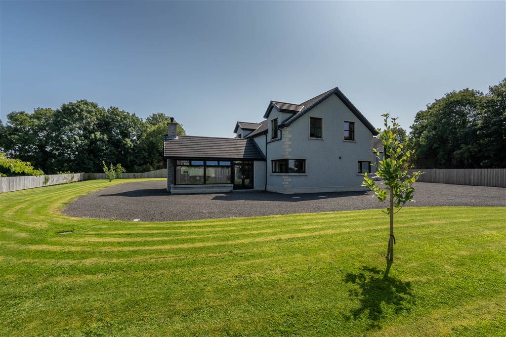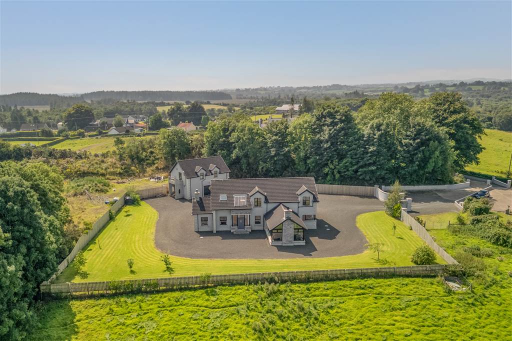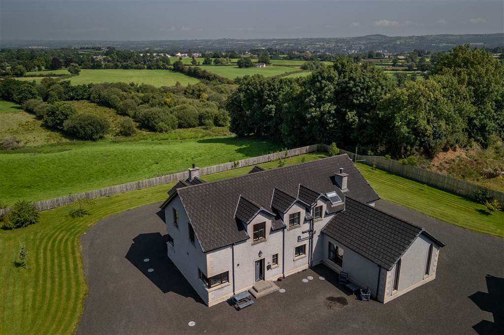 Homes Independent are delighted to present this exceptional 5-bedroom family home with large detached garage, set on approximately 0.70 acres in the peaceful countryside off the Mullaghnamoyagh Road. Built in 2009 to a superb standard, the property offers over 2,500 sq ft of well-planned living space including a ground floor main bedroom with en-suite and walk-in wardrobe, an impressive open-plan kitchen/dining/living area, utility room and high-quality finishes throughout. Unique features include a purpose-built bar inside the home and a second bar on the first floor of the garage. Externally, a gated driveway, generous parking, landscaped gardens and breathtaking panoramic views complete this dream home. Convenient to Bellaghy, Portglenone and major commuter routes, this stunning home perfectly blends rural tranquillity with modern family living.