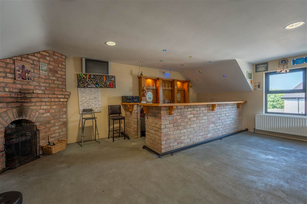 With roller door. Side pedestrian door. Power, light and heating. Two cloakrooms with LFWC. Stairs leading to games room/bar.