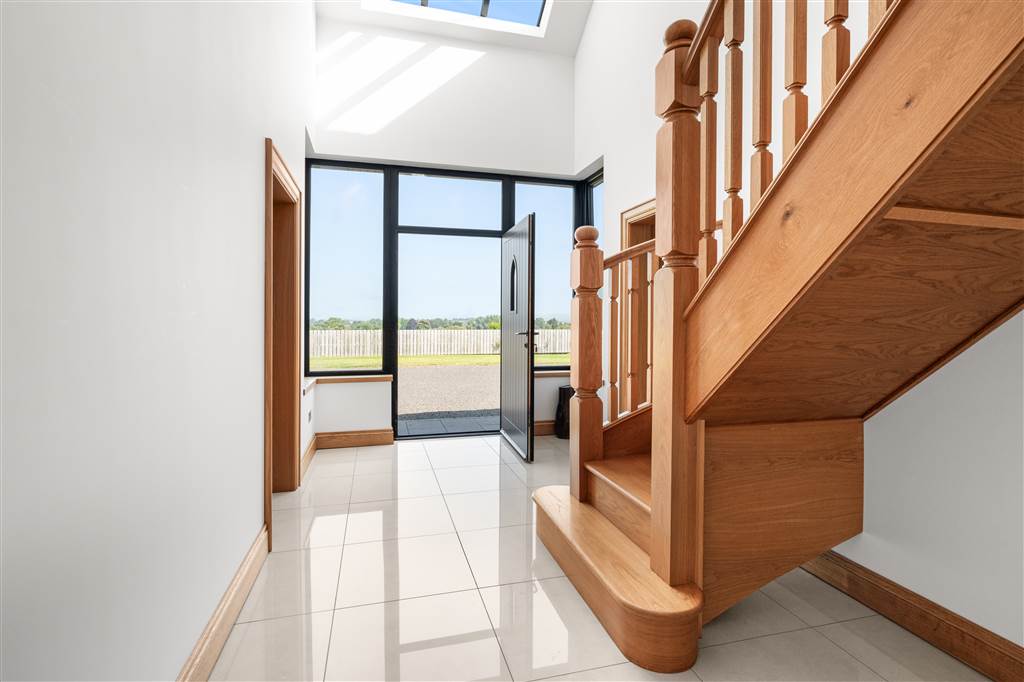 With hardwood front door with glazed pane and glazed surround. Solid Oak balustrade staircase to first floor. Tiled flooring.