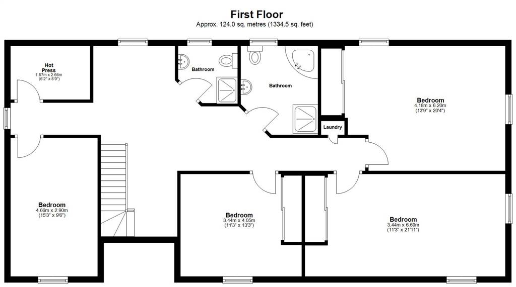 With Velux window. Hot-press with shelved storage. Laundry chute to utility room. Tiled flooring.