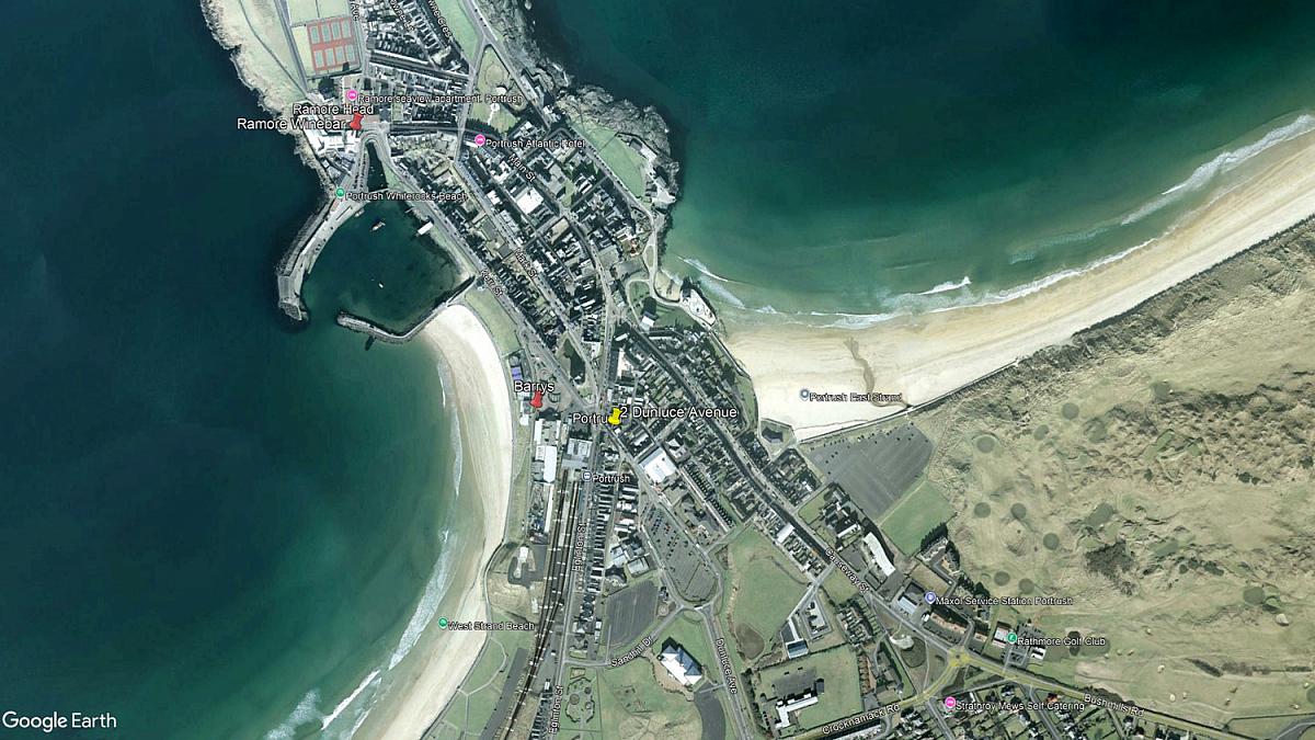 Approaching Portrush Town Centre on the Coleraine Road continue through the mini-roundabout taking the second exit onto Eglinton Street. Travel along the street until you reach the Eglinton hotel and turn right. Immediately on your left hand side is chequers chip shop and the entrance to this apt is the door on the right hand side.