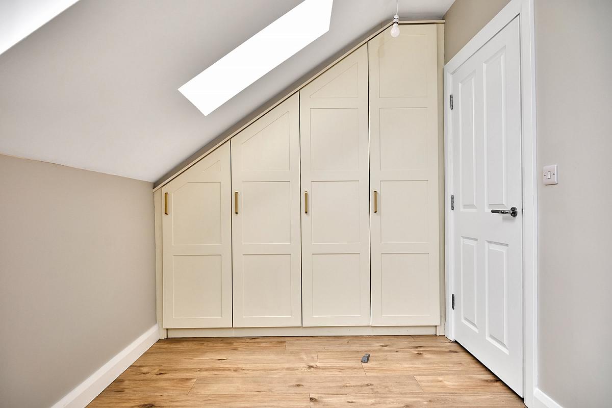 With built in wardrobes, laminate wood floor and 'Velux' window.
