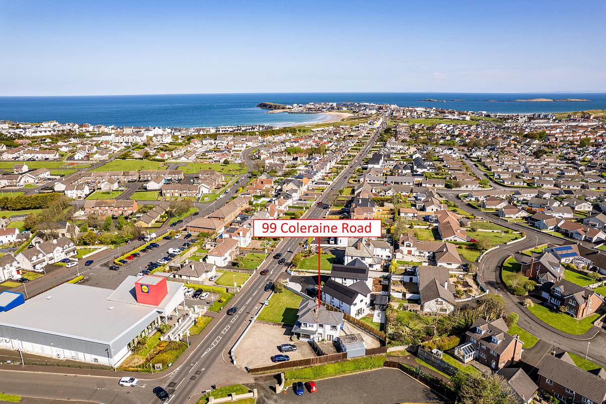 Approaching Portrush from Coleraine on the Coleraine Road, No.99 will be situated on your right after the Hillside filling station.