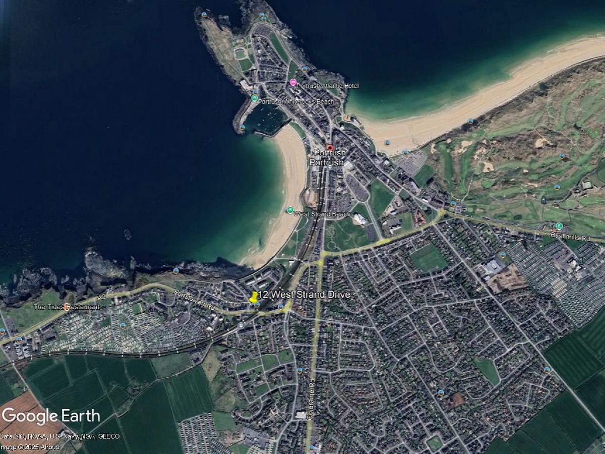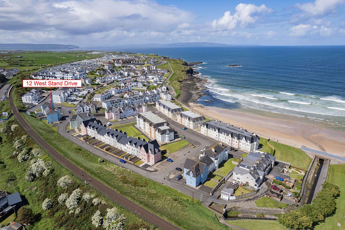 Approaching Portrush from Portstewart take your first left into West Strand Road before the railway bridge at Dhu Varren. Proceed straight ahead onto West Strand Drive and No 12 will be located in the first building on your right hand side.