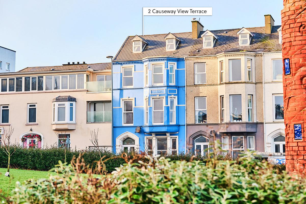 From Portrush Harbour, head through Ramore Street onto Ramore Avenue going past the former tennis courts. Turn right onto Lansdowne Crescent and right again onto Causeway View Terrace. No 2 will be the blue building on your right hand side opposite Antrim Gardens.