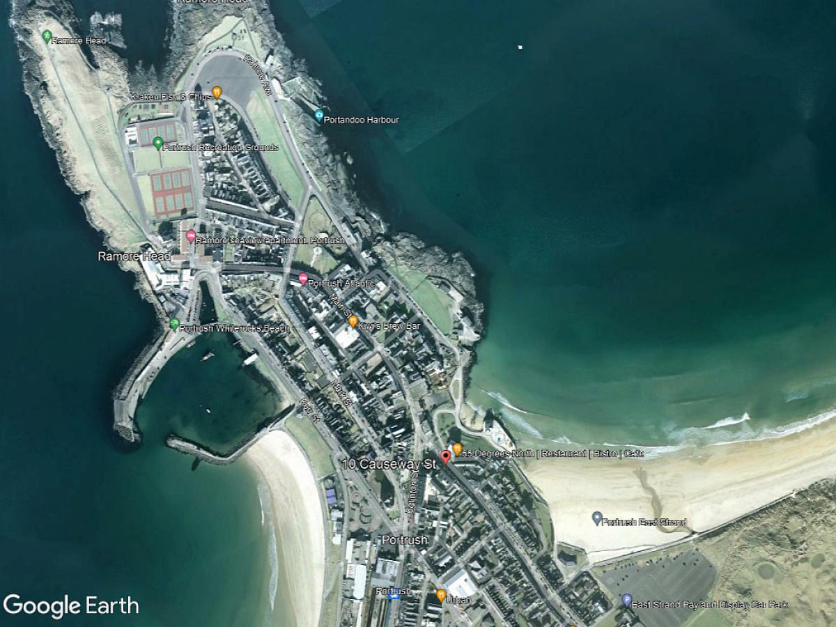 Approaching Portrush from either Coleraine or Portstewart, proceed onto Crocknamack Road. Proceed to the end and turn left at the roundabout onto Causeway Street. No 10 will be located at the lower end on your left hand side immediately opposite the North 55 Restaurant in the centre of Portrush.