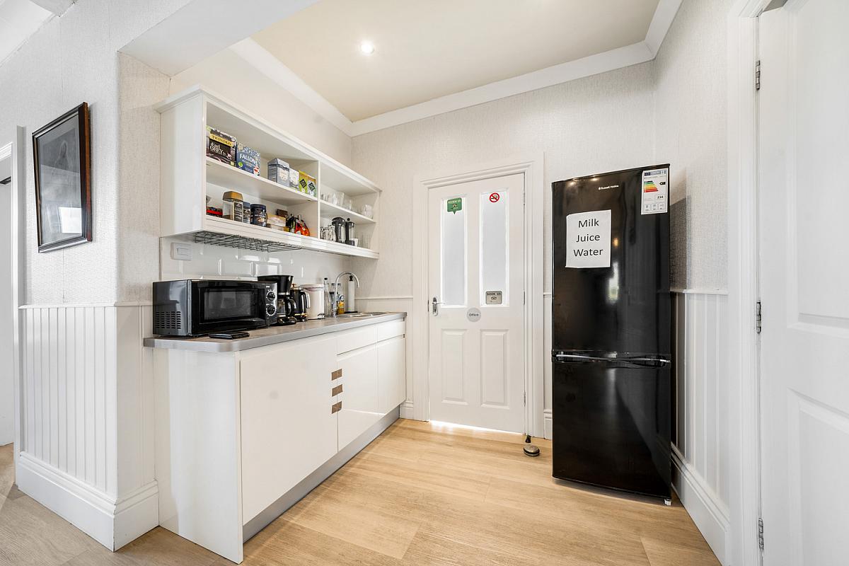 machines, a sink, storage for crockery, cutlery and glassware and access to the Reception/Office.