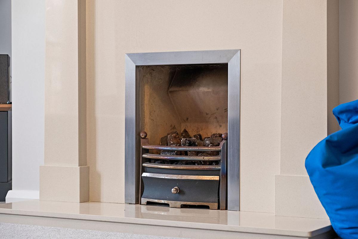 With gas fire, marble surround fireplace with marble hearth and PVC French doors leading to feature balconette. 178 x 1310