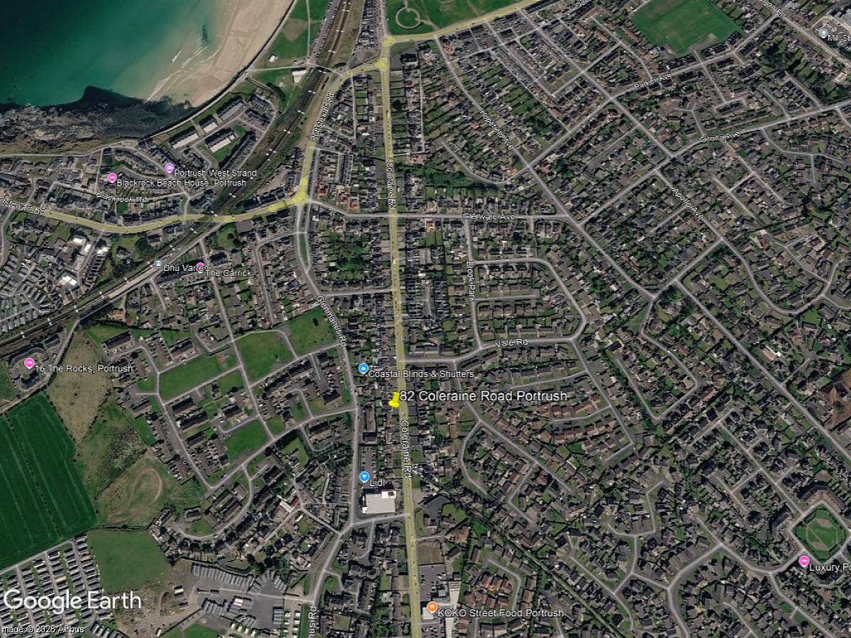Approaching Portrush on the Coleraine Road from Coleraine, No 82 will be on your left hand side after Lidl.