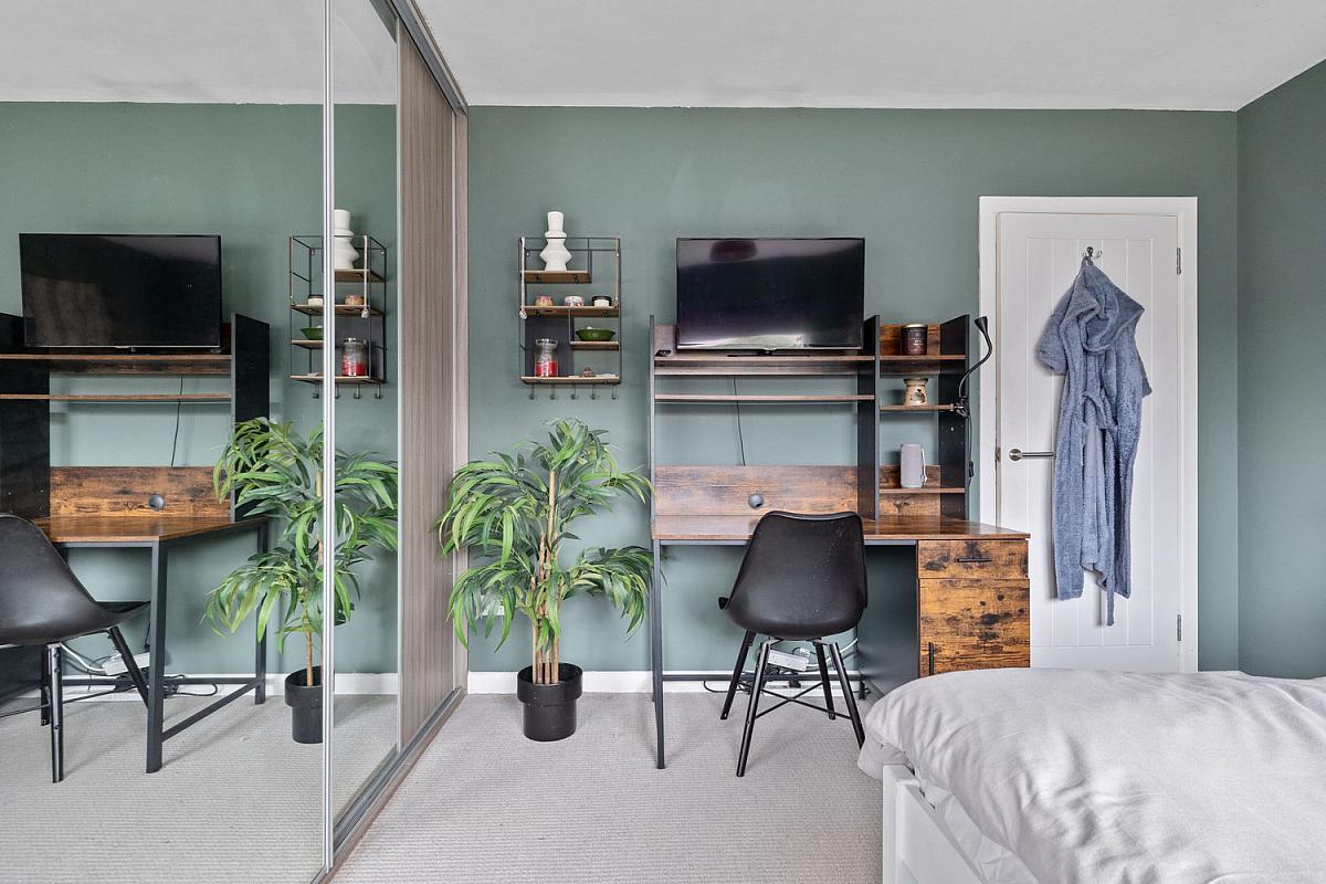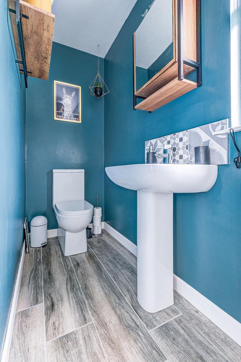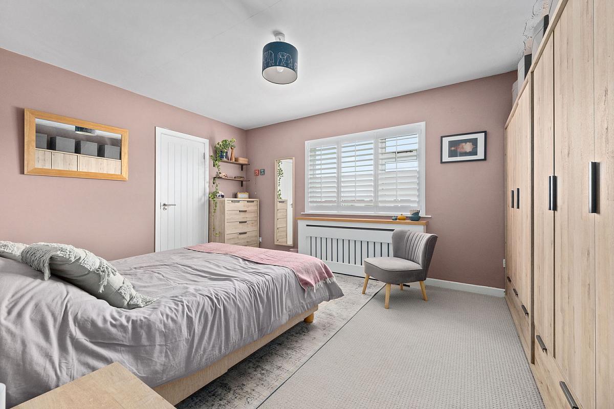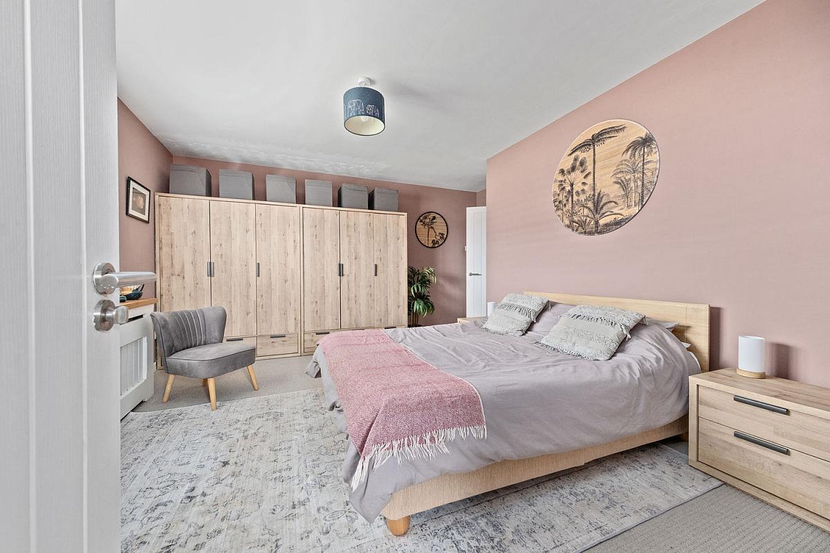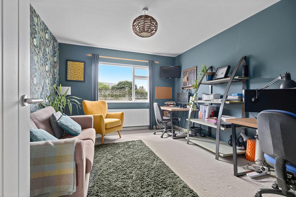 With part wood panelled wall, cloaks cupboard, hot press, access to roof space and laminate wood floor.
