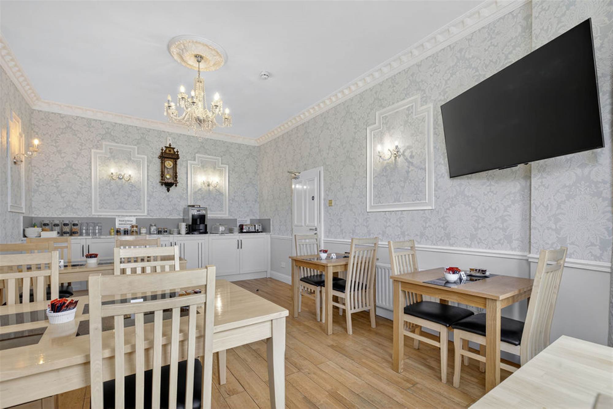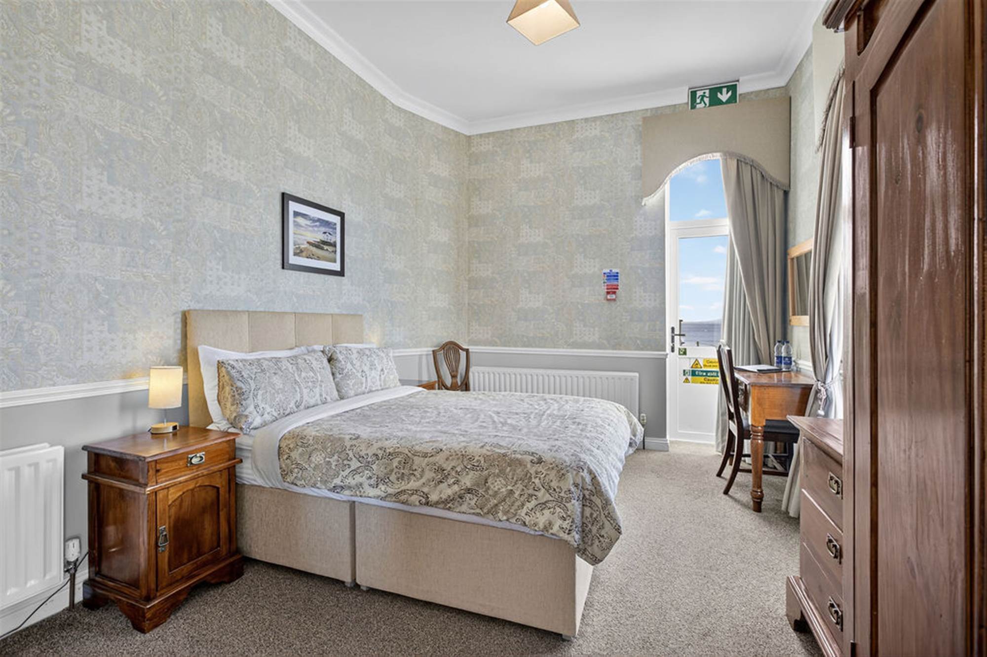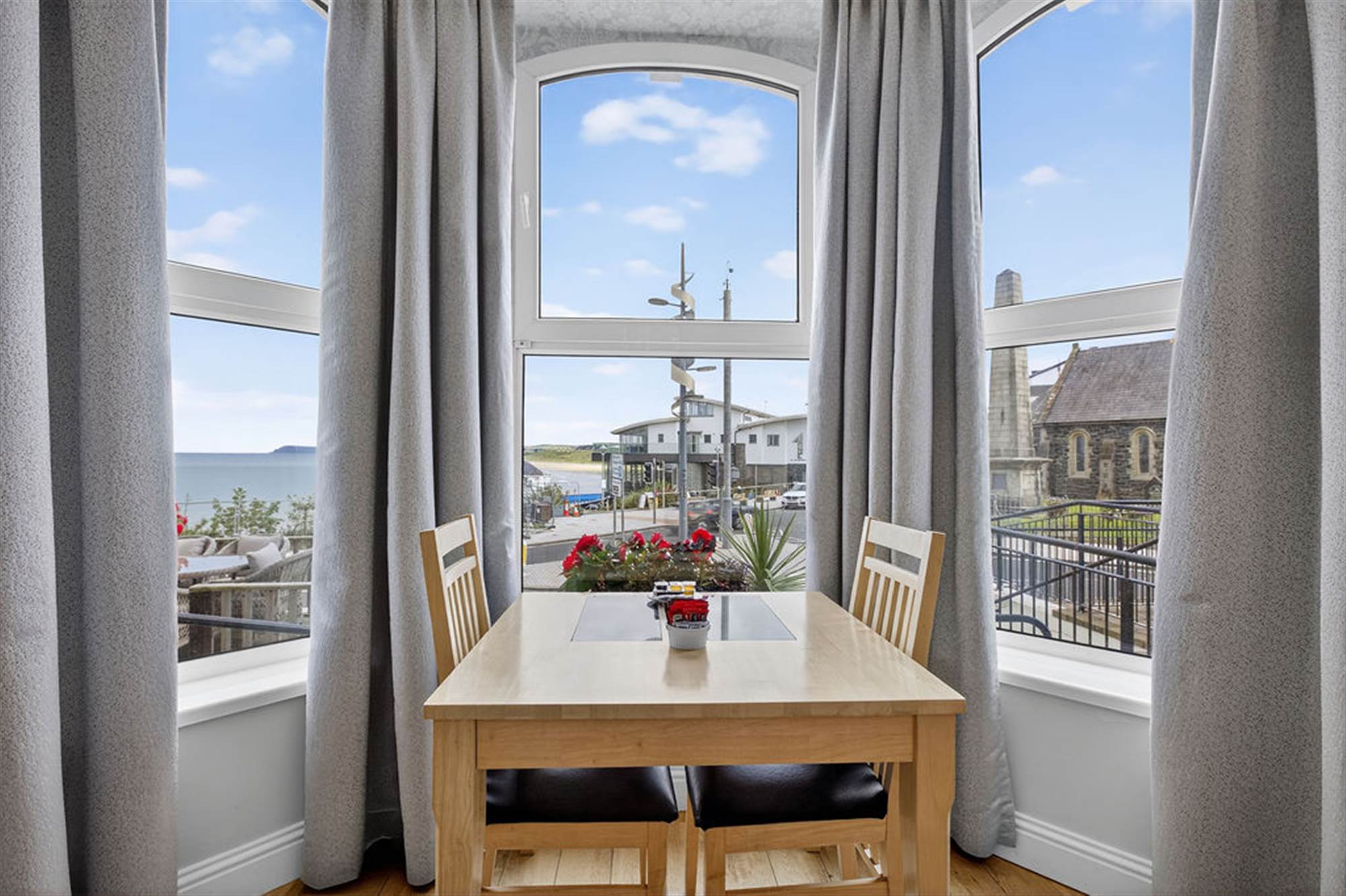 With dado rail, cornicing, PVC pedestrian door leading to fire escape and sea views across East Strand, Skerries and Donegal Headlands.