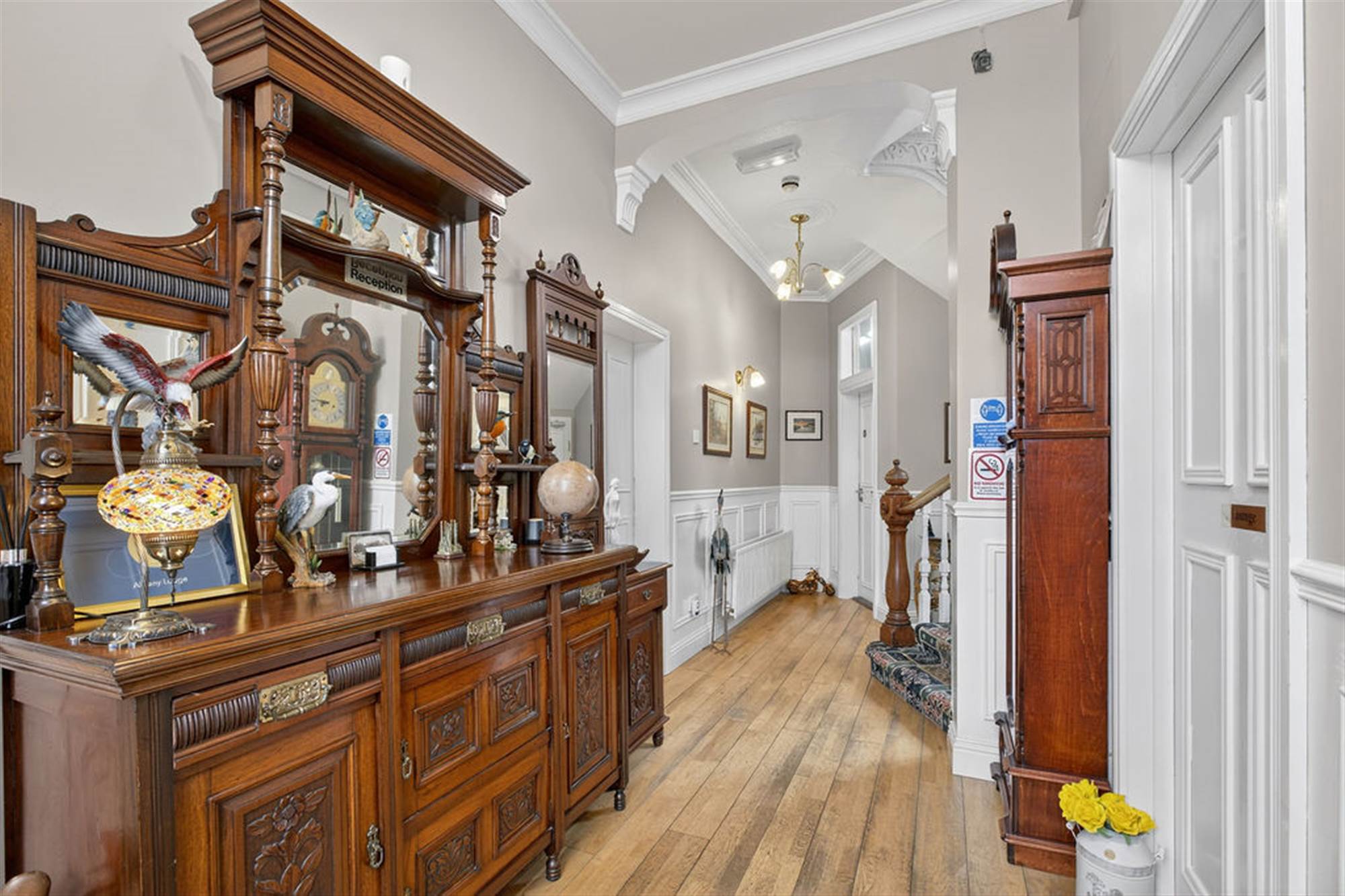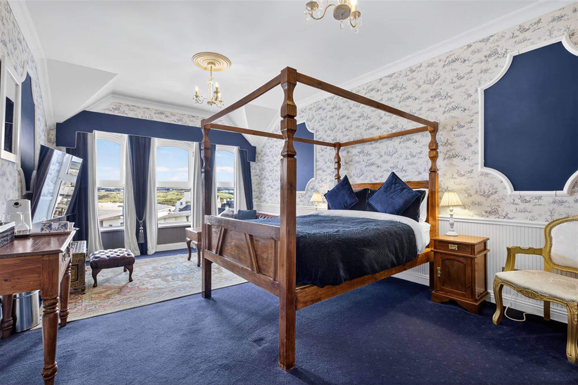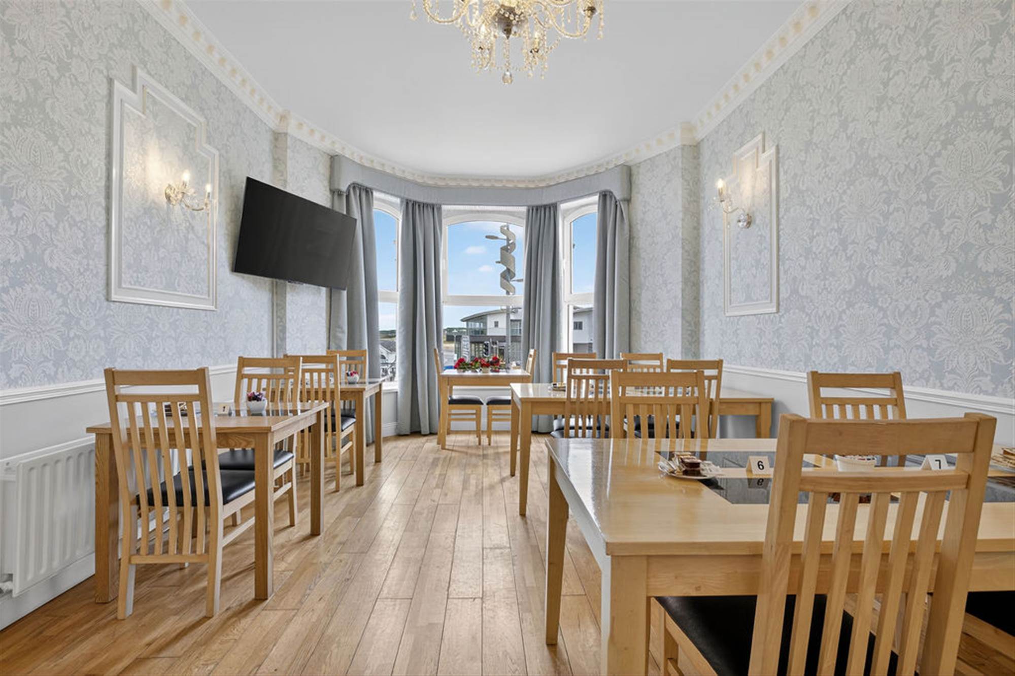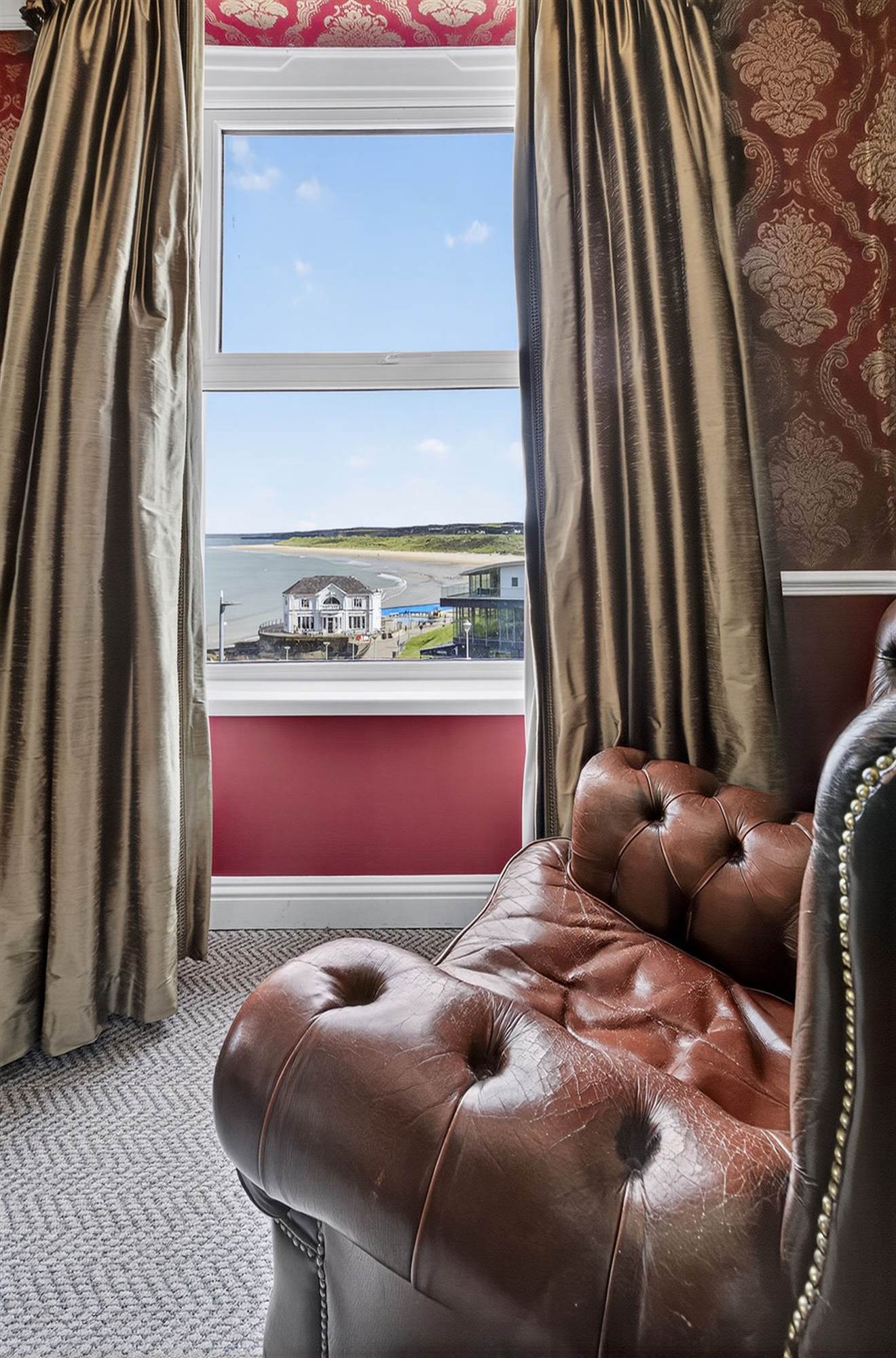With dado rail, cornicing, part wood panelled walls, centrepieces and sea views across East Strand, Skerries and Donegal Headlands.