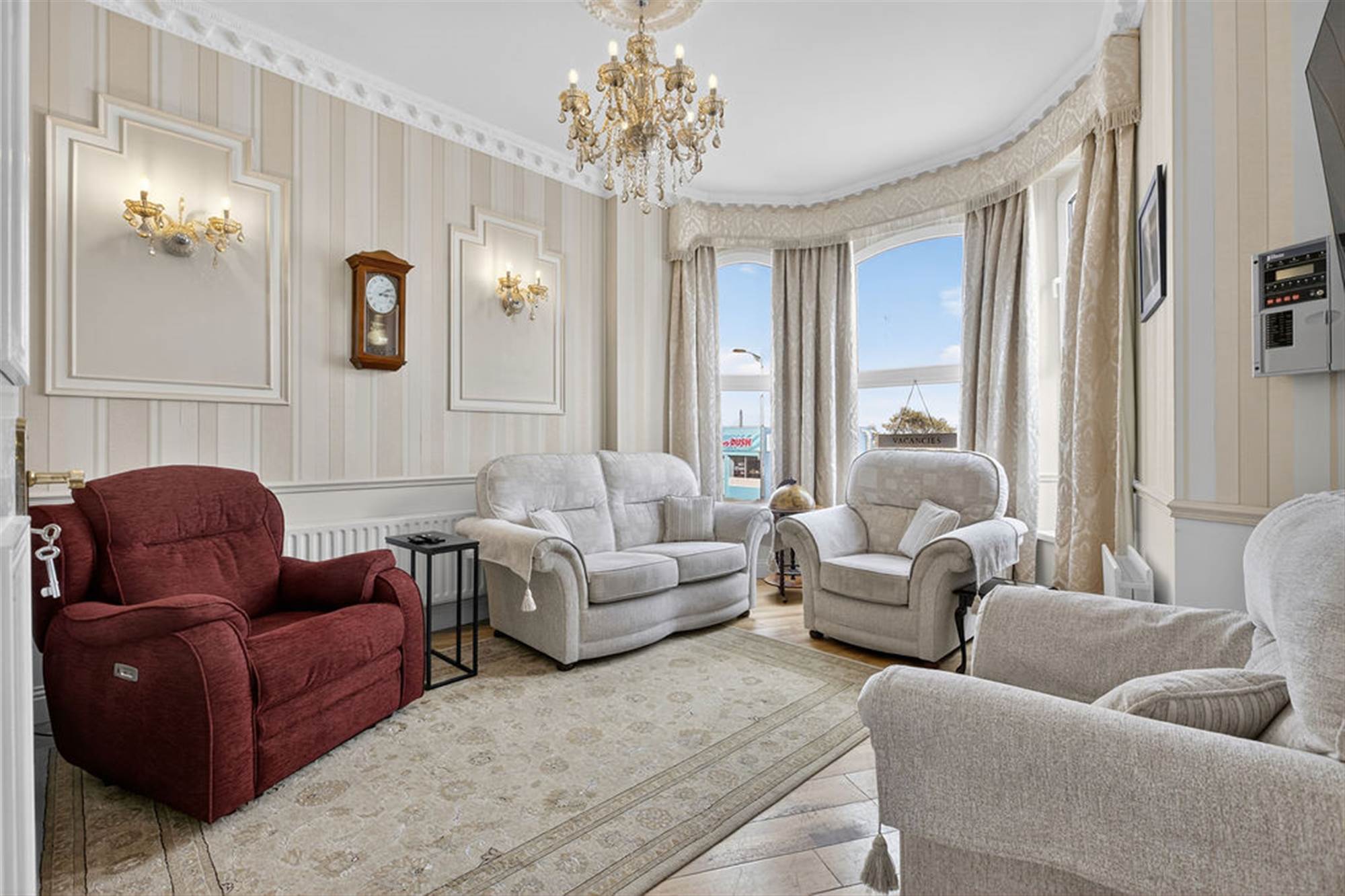 With dado rail, cornicing, centrepiece and bay window with sea views across East Strand, Skerries and Donegal Headlands.