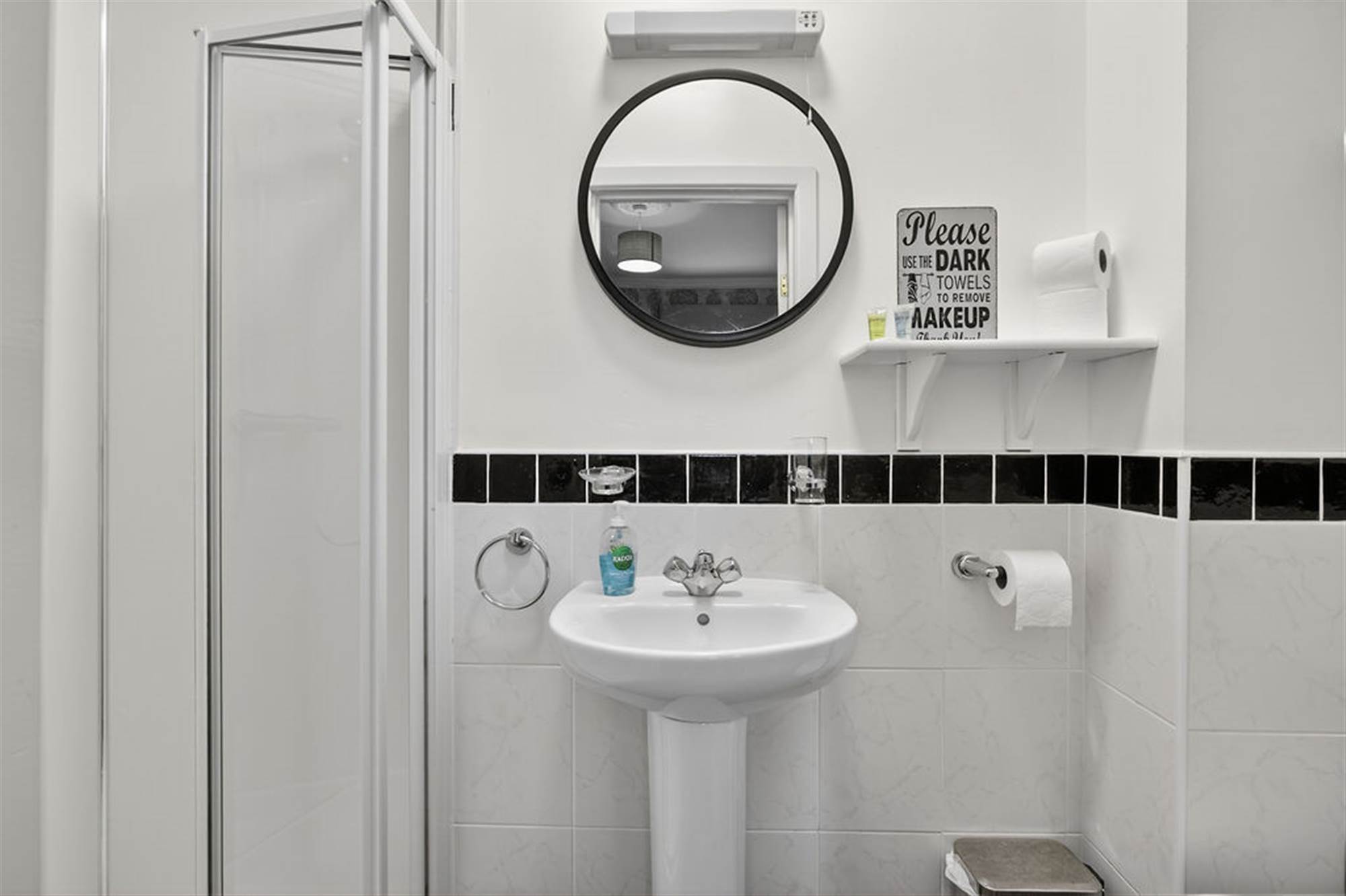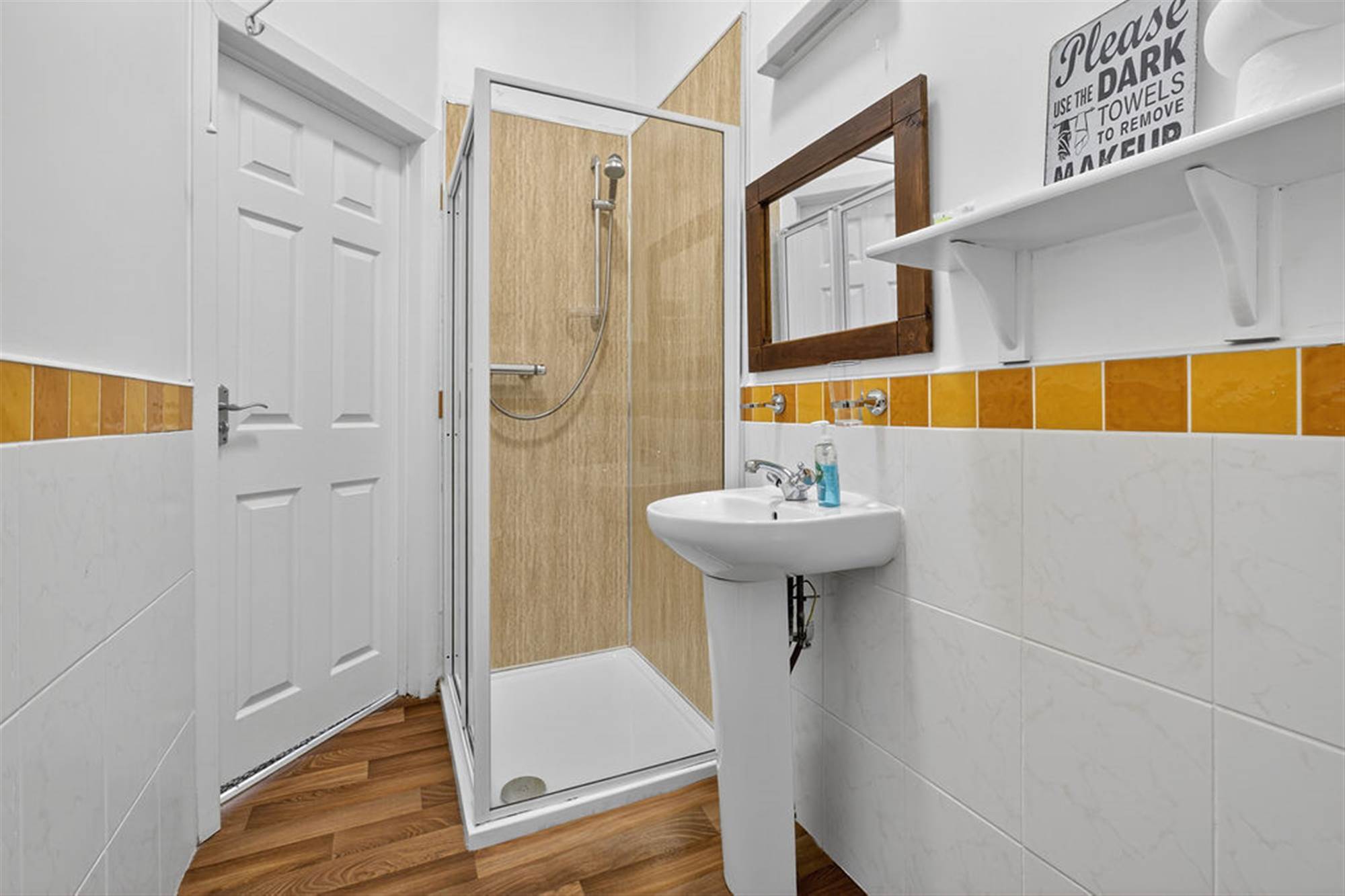 Ensuite off with w.c., wash hand basin, PVC cladded walk in shower cubicle with mains shower, half tiled walls, shaver point and extractor fan.