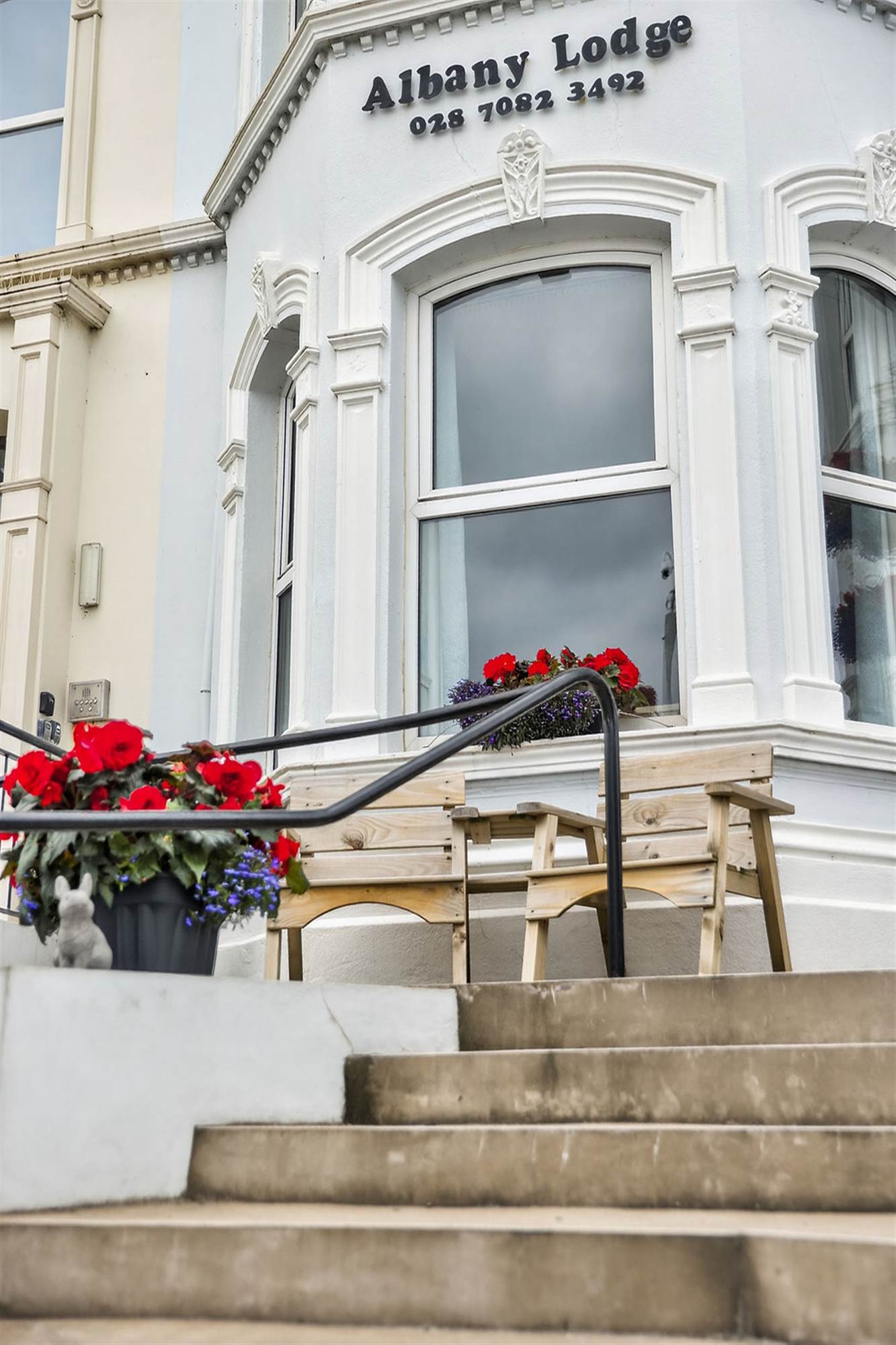 Concrete driveway leading to garage 16"3 x 12"8 with light and power points and storage suitable for motorbikes. Storage with extractor fan and laminate wood floor, accessed by PVC French doors. Concrete steps leading to front of property with elevated decked area with sea views across East Strand, Skerries and Donegal Headlands. Light to front and rear. Tap to rear. Yard to rear is fenced in and screened with PVC shed door to side with light and power points. 9"10 x 5"1