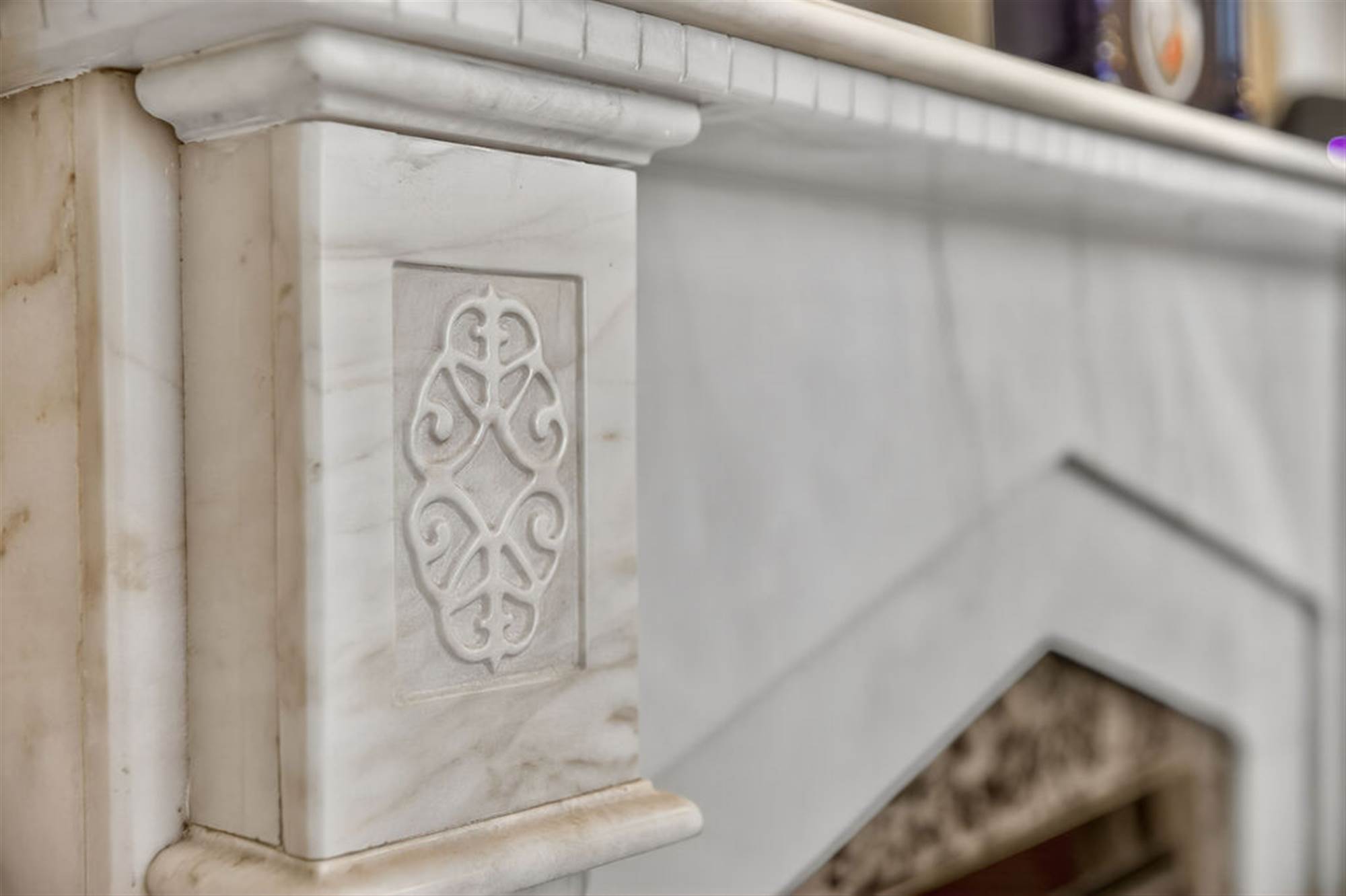 With marble surround fireplace with marble inset and hearth, dado rail, cornicing, wired for wall lighting, dimmer control panel and solid wood floor.