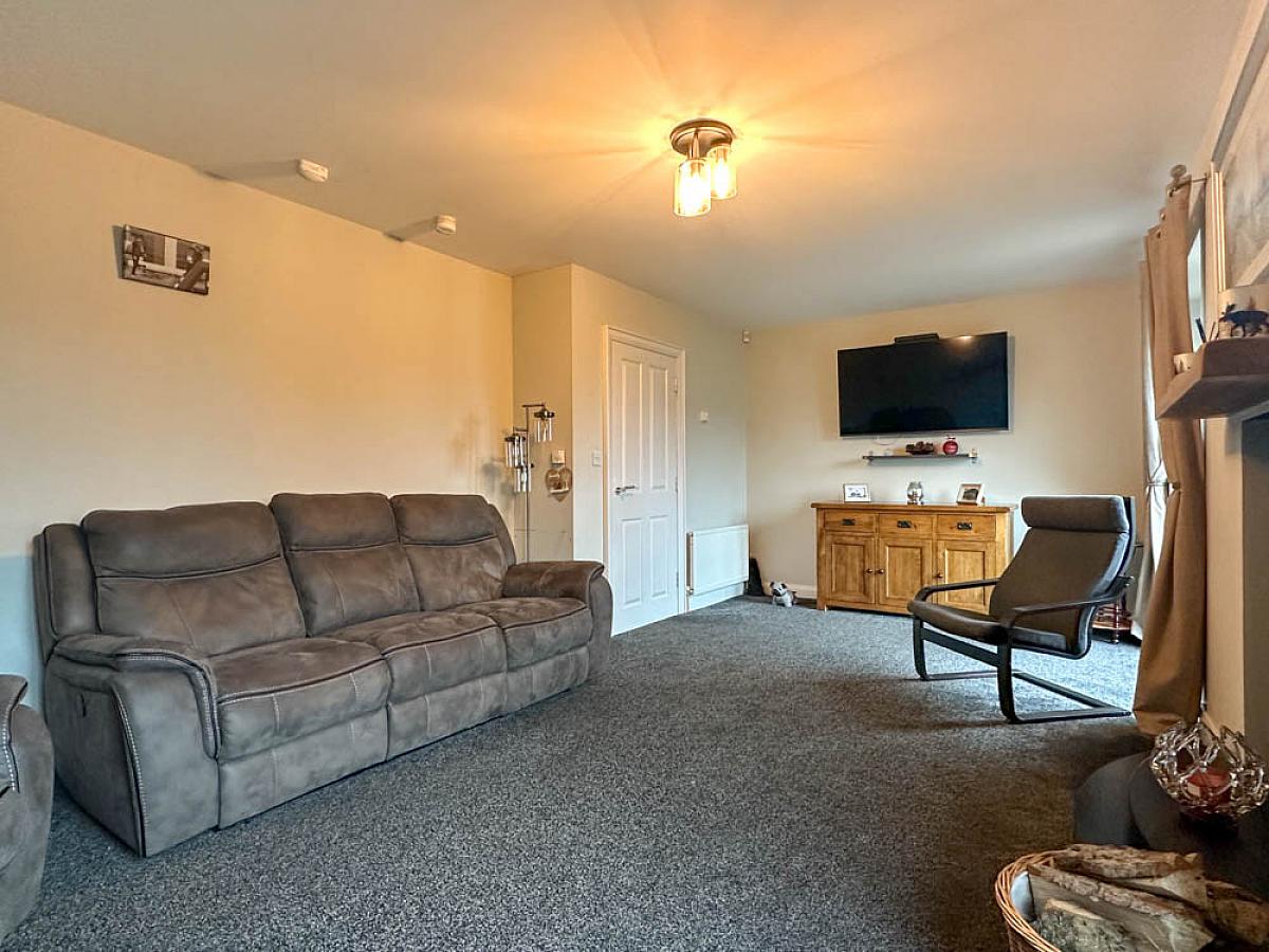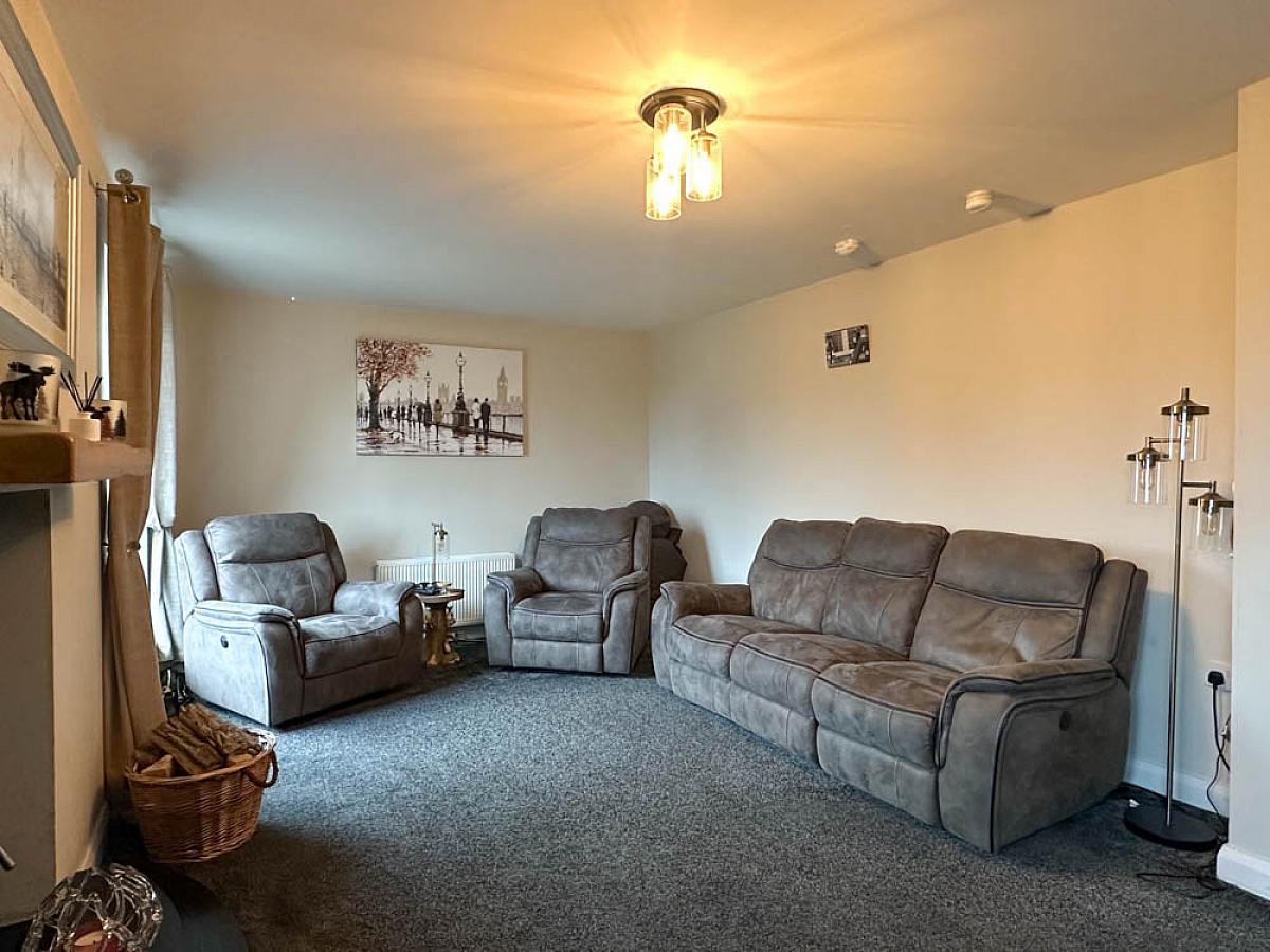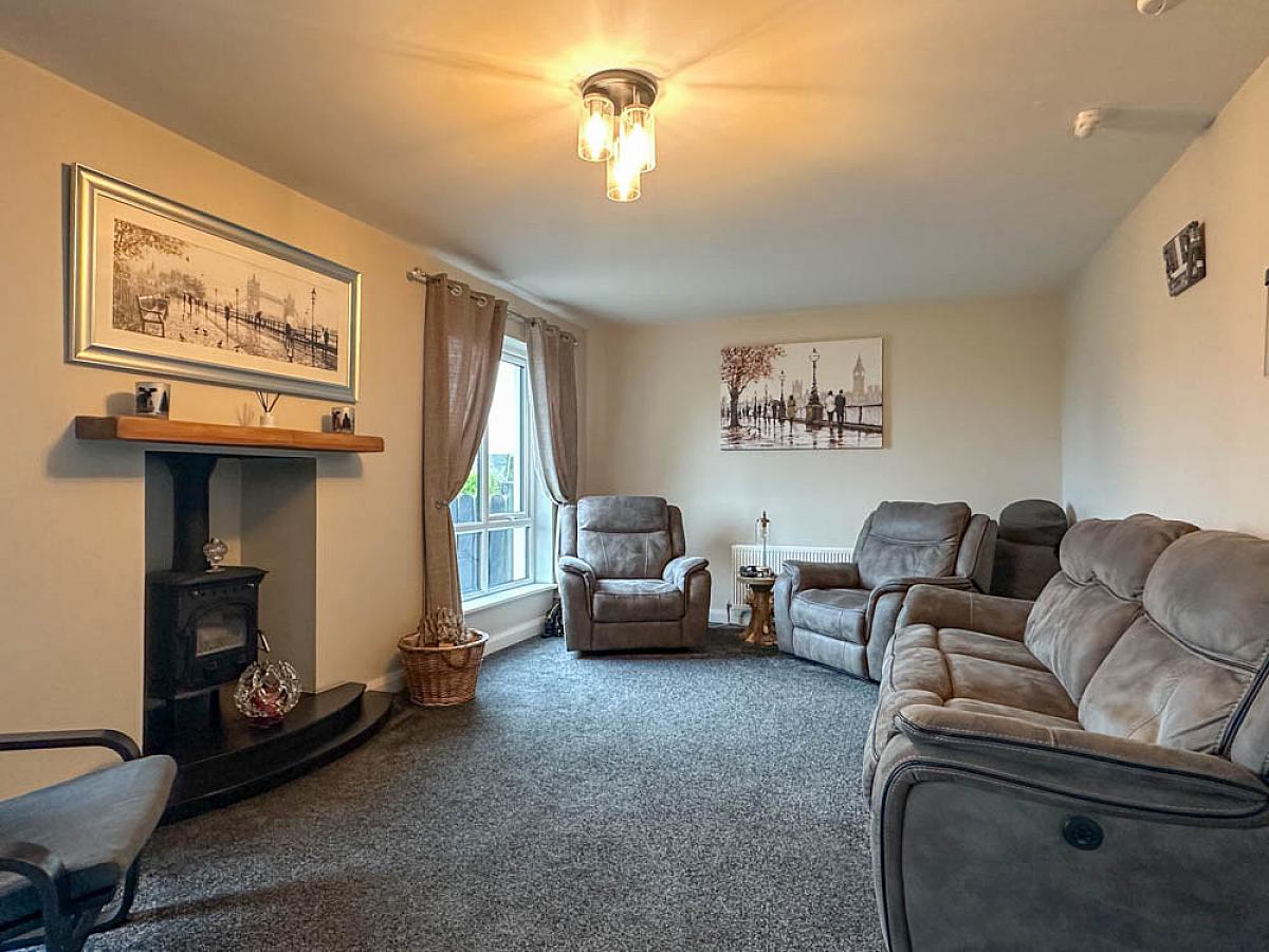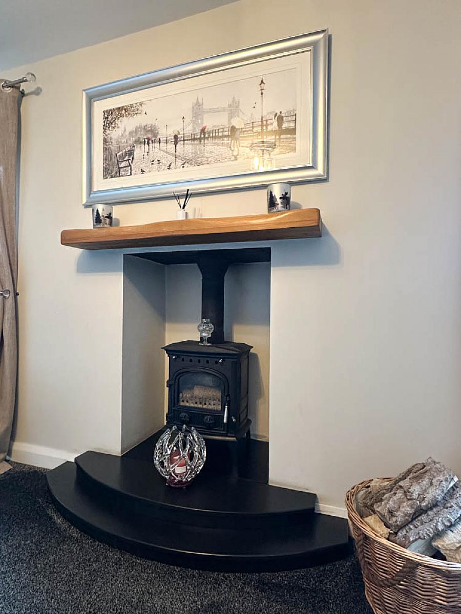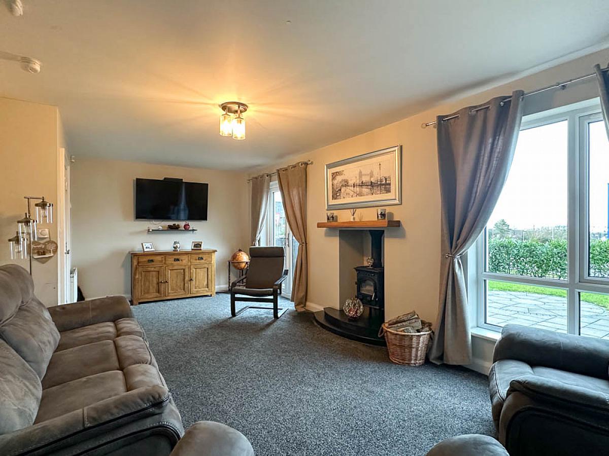 (Max) with wood burning stove on a raised hearth, wooden mantle, television point, uPVC French doors to the front garden.
