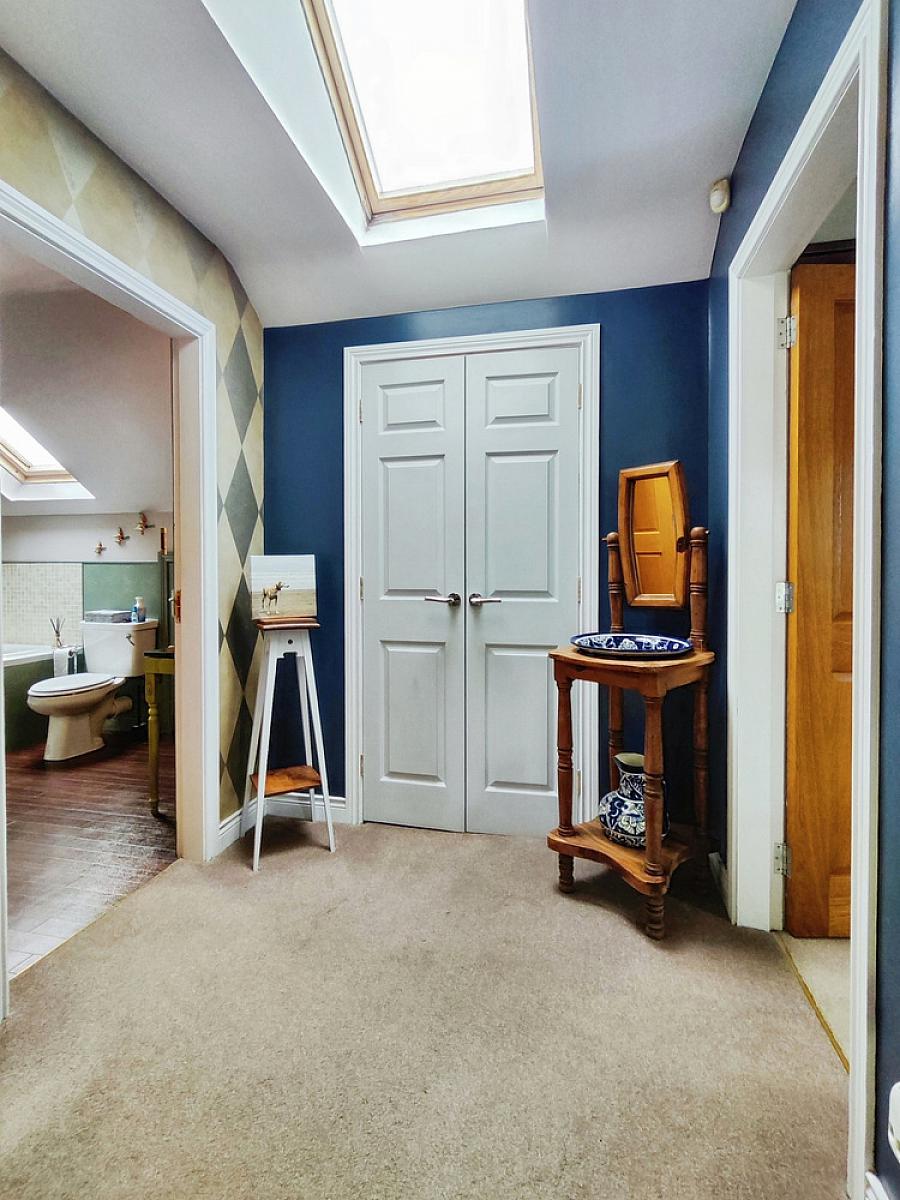 With built in bedroom furniture comprising wardrobes and drawers with additional storage into the eaves.