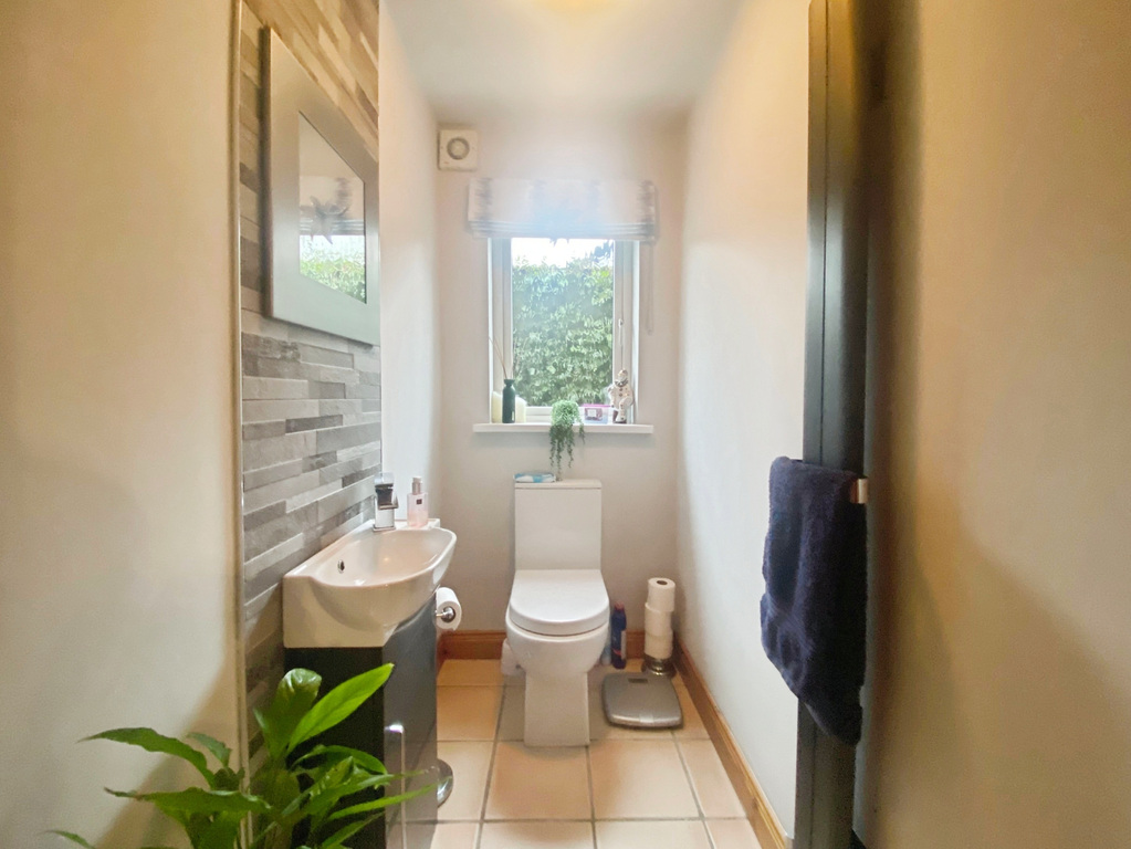 With wc, wash hand basin with tiled splash back, extractor fan and tiled floor.