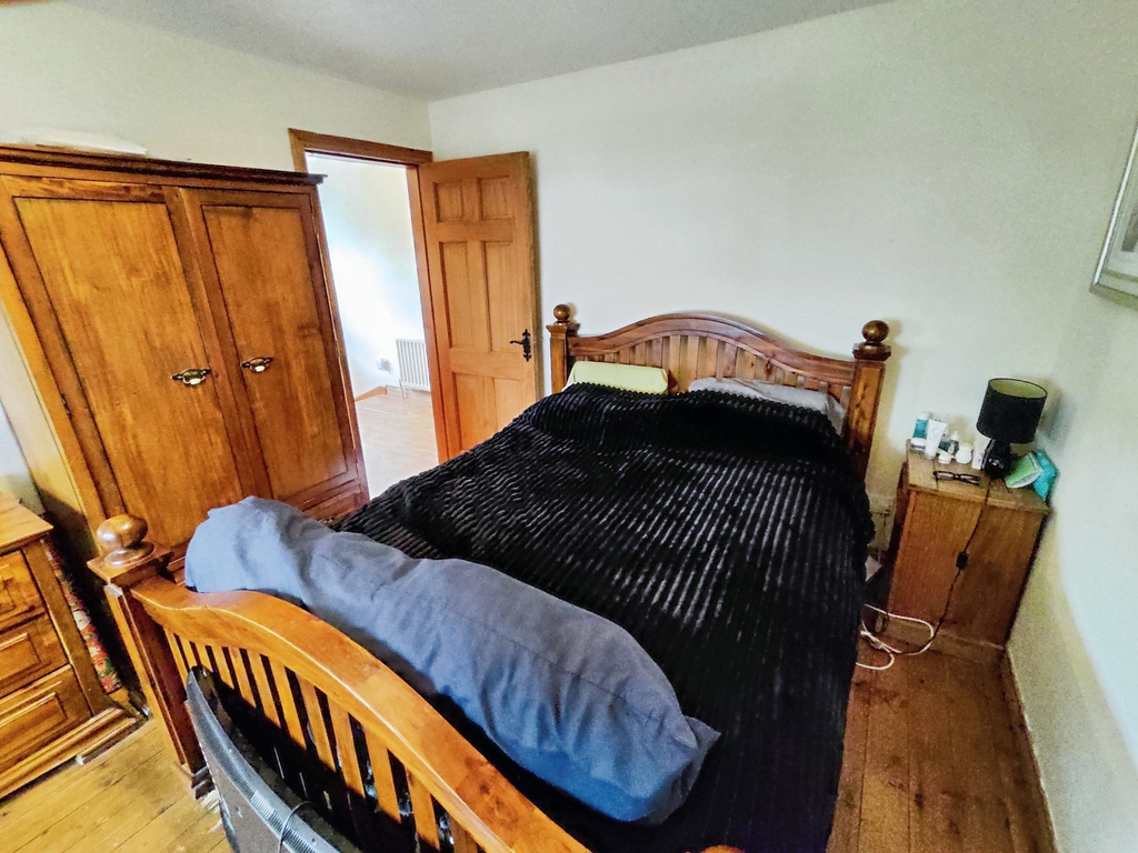 With wooden flooring. En-suite comprising fully tiled walk in shower cubicle, wc and wash hand basin.