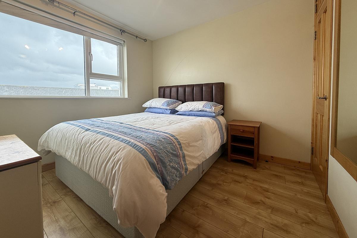 Double bedroom to the rear; built-in cupboard; laminate wood flooring.