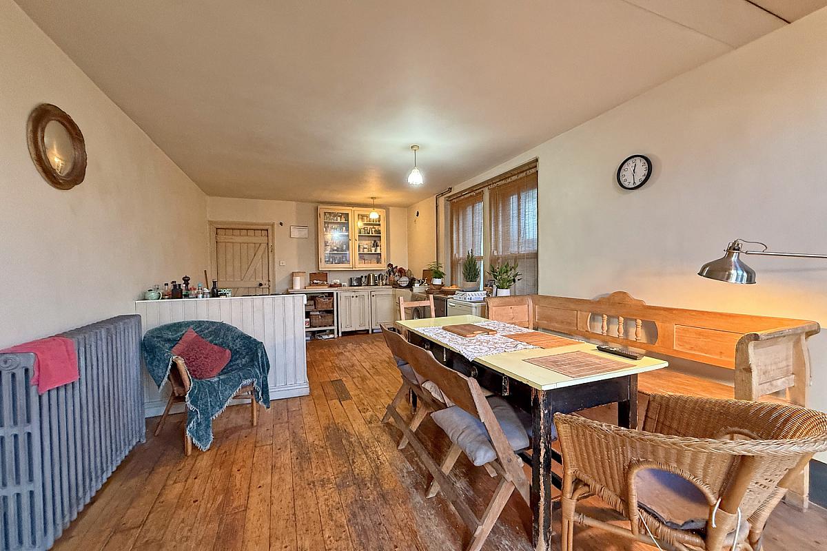 Range of fitted units; Belfast sink; gas hob; electric oven; space for fridge freezer; plumbed for washing machine; space for dining; open to living area.