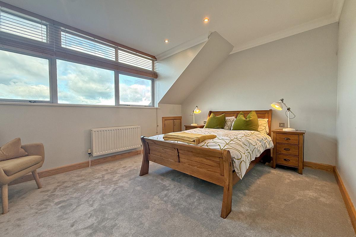 Double bedroom to the side with sea views; recessed lighting; access to the eaves storage.