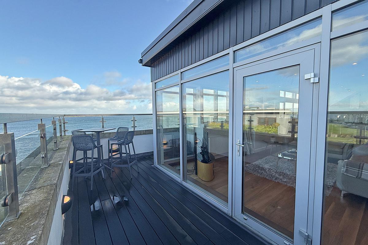Panoramic sea views; composite decking; external lights & power points.