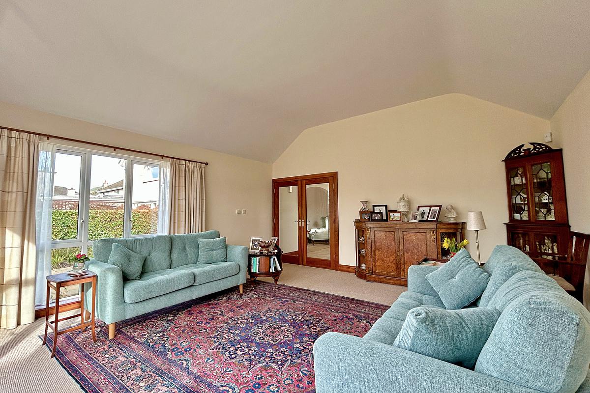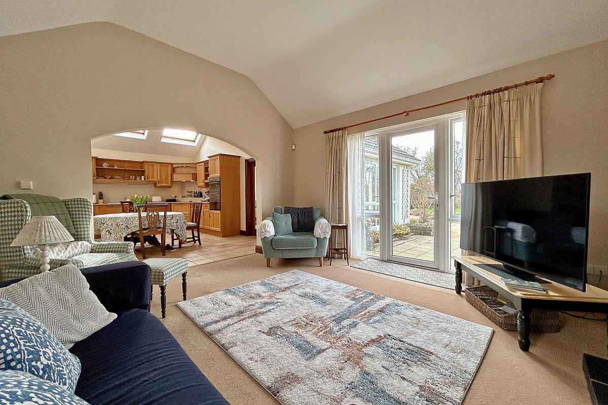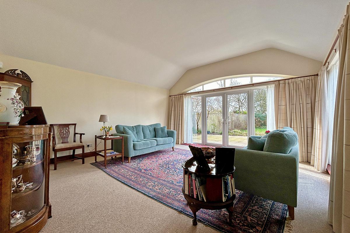 Bright living area to the rear; underfloor heating; vaulted ceilings; patio doors to the rear.