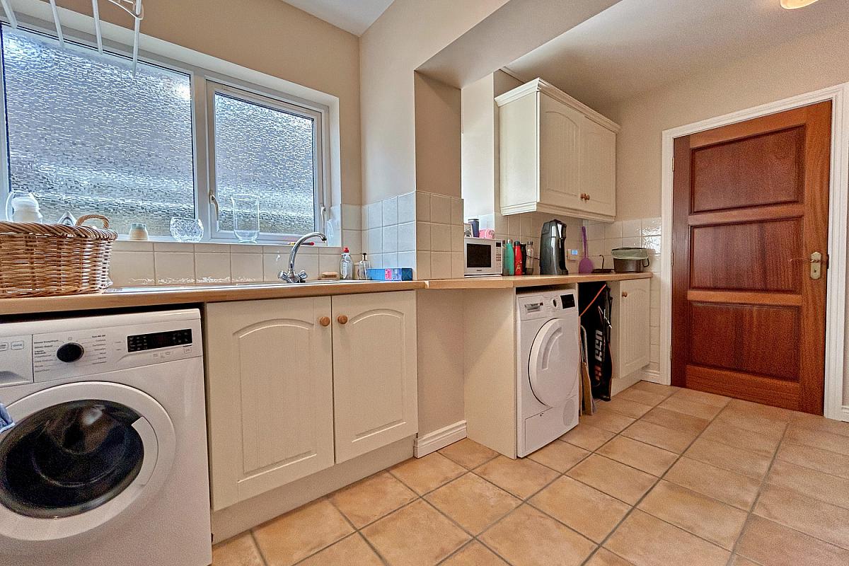 Range of fitted units; laminate work surfaces; stainless steel sink unit; plumbed for washing machine; space for dryer; underfloor heating; tiled floor.