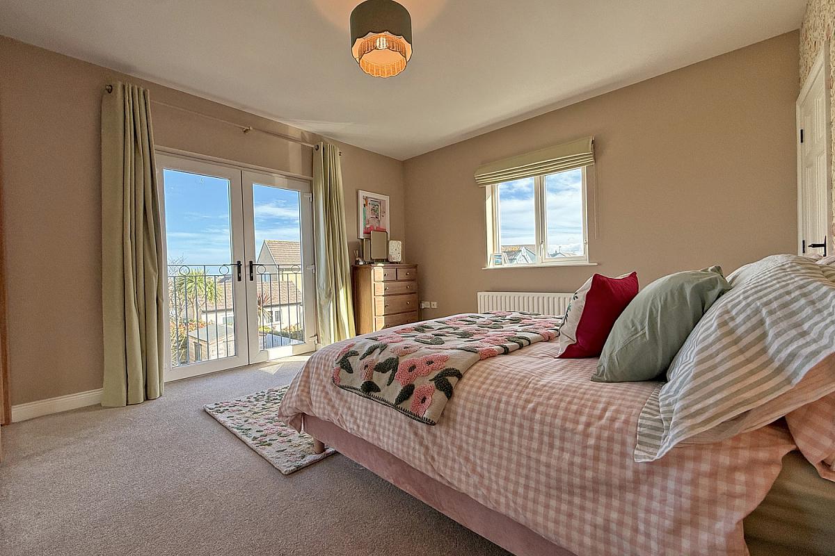Spacious rear-facing double bedroom with patio doors opening to a Juliet balcony.