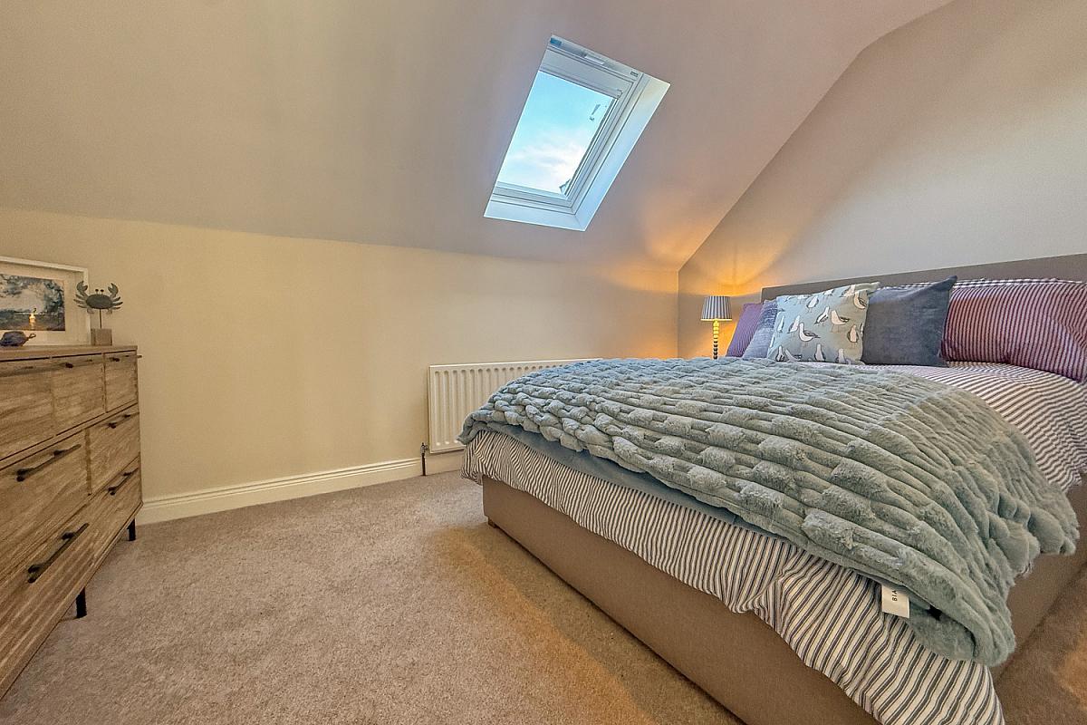 Rear-facing double bedroom with Velux window.