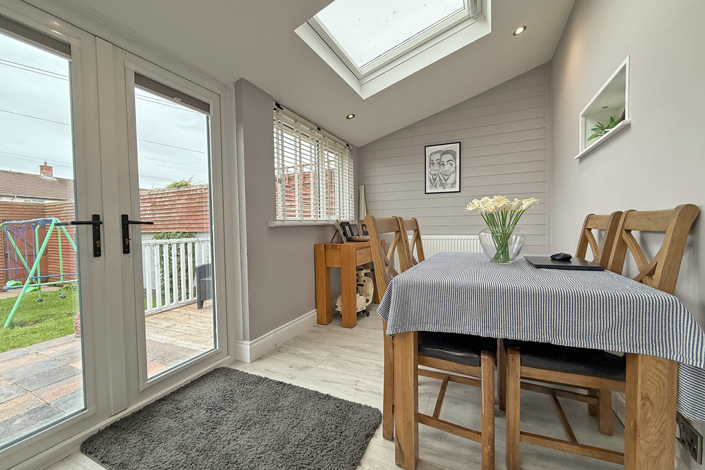 Part wood panelled walls; recessed lighting; patio doors leading to the rear.