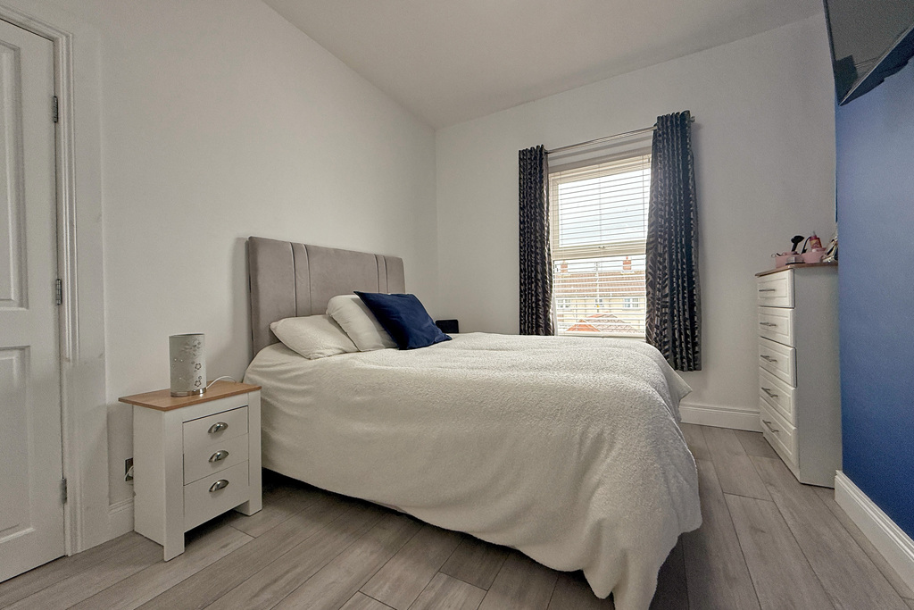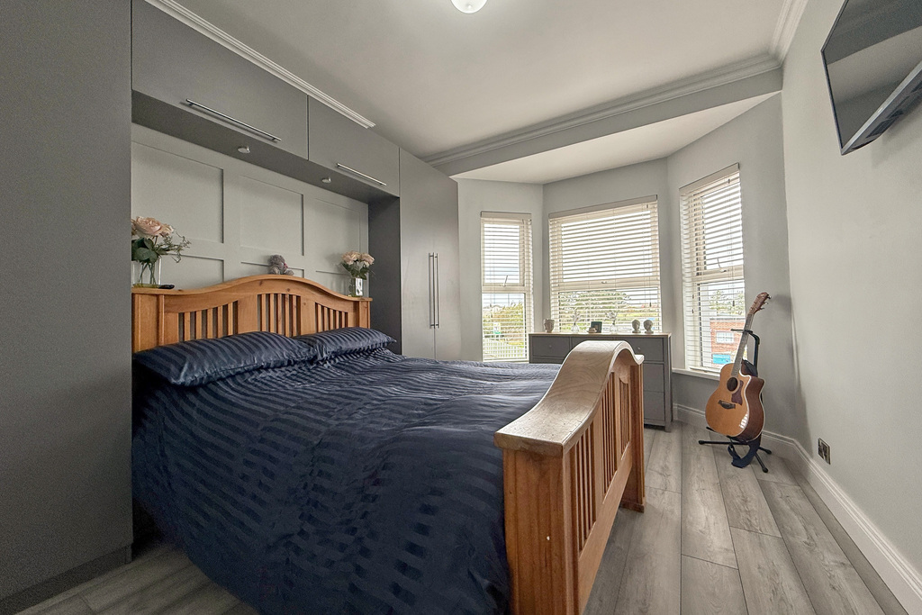 Double bedroom to the front with bay window; fitted bedroom furniture; recessed lighting; laminate floor.