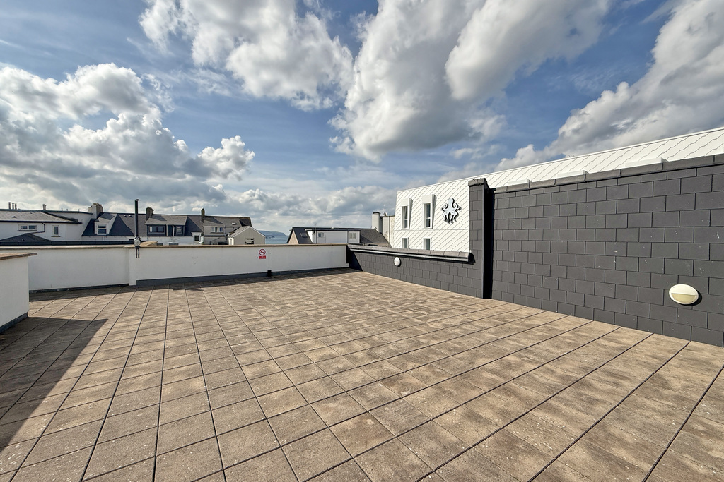 - Access to a communal roof terrace with coastal views.