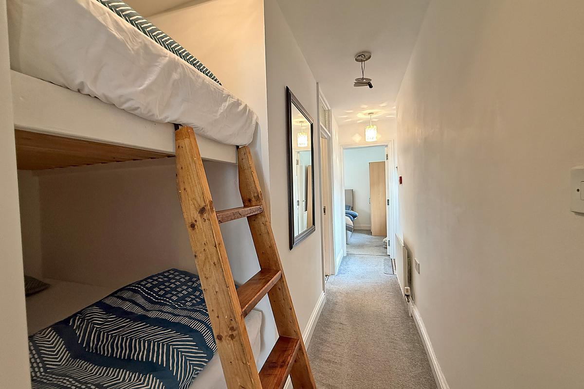 Alcove with fitted bunk beds; door to the rear fire escape.